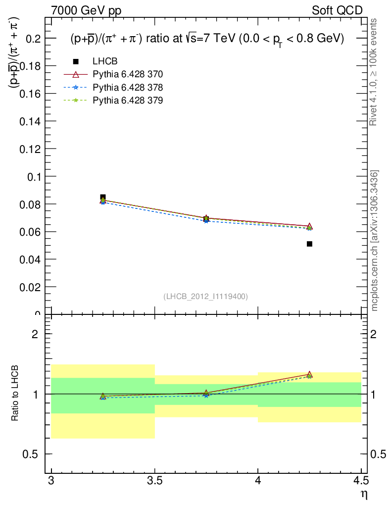 Soft QCD (inelastic) : Identified Particles : Ratios : (pbar+p)/(π-+π+) vs |y|
