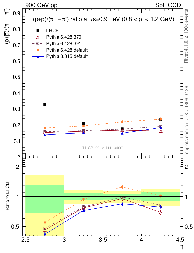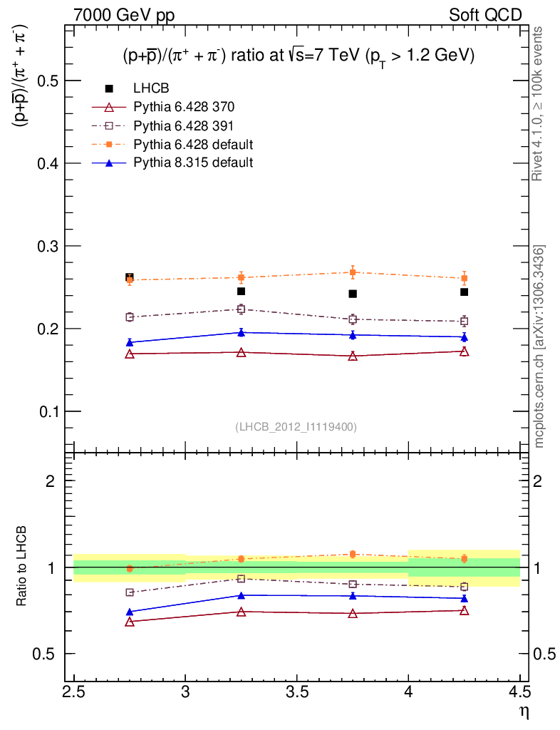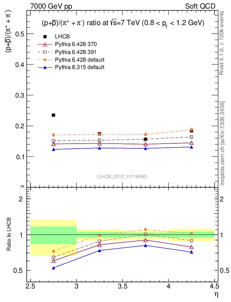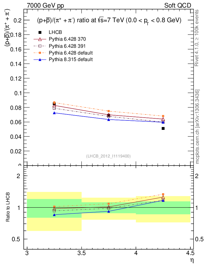 Soft QCD (inelastic) : Identified Particles : Ratios : (pbar+p)/(π-+π+) vs |y|