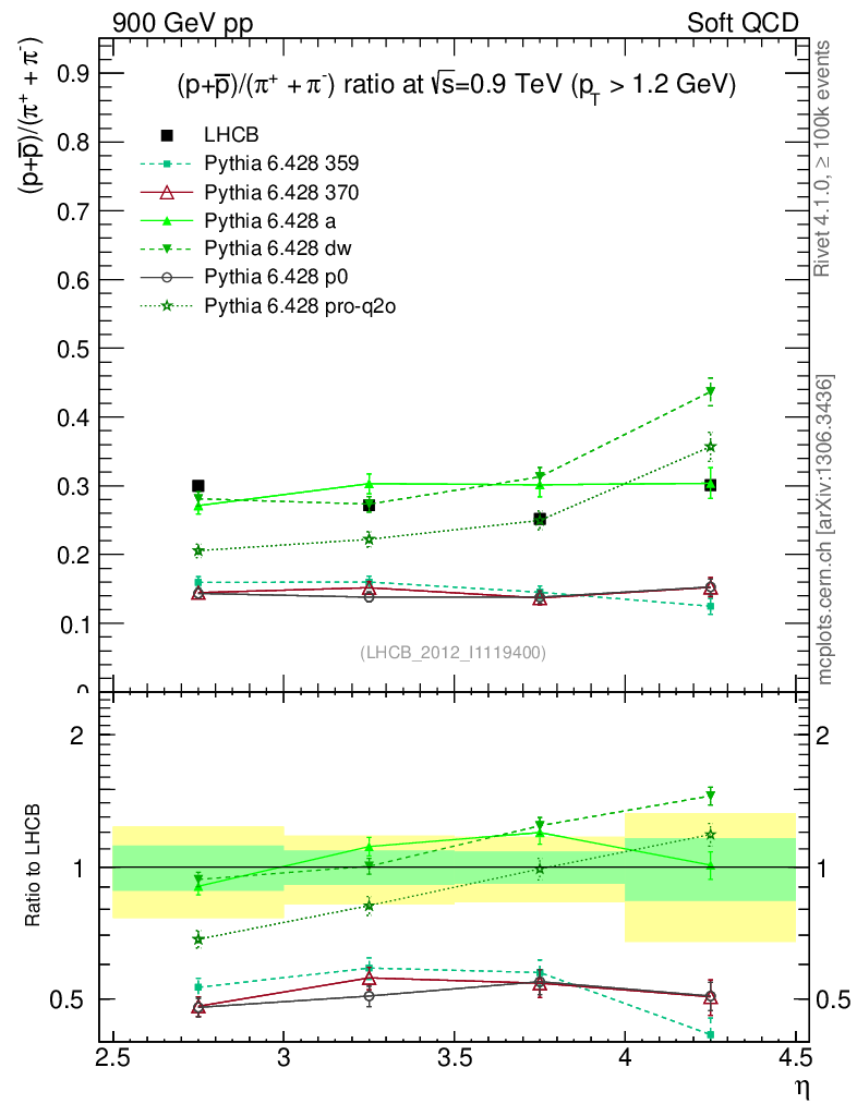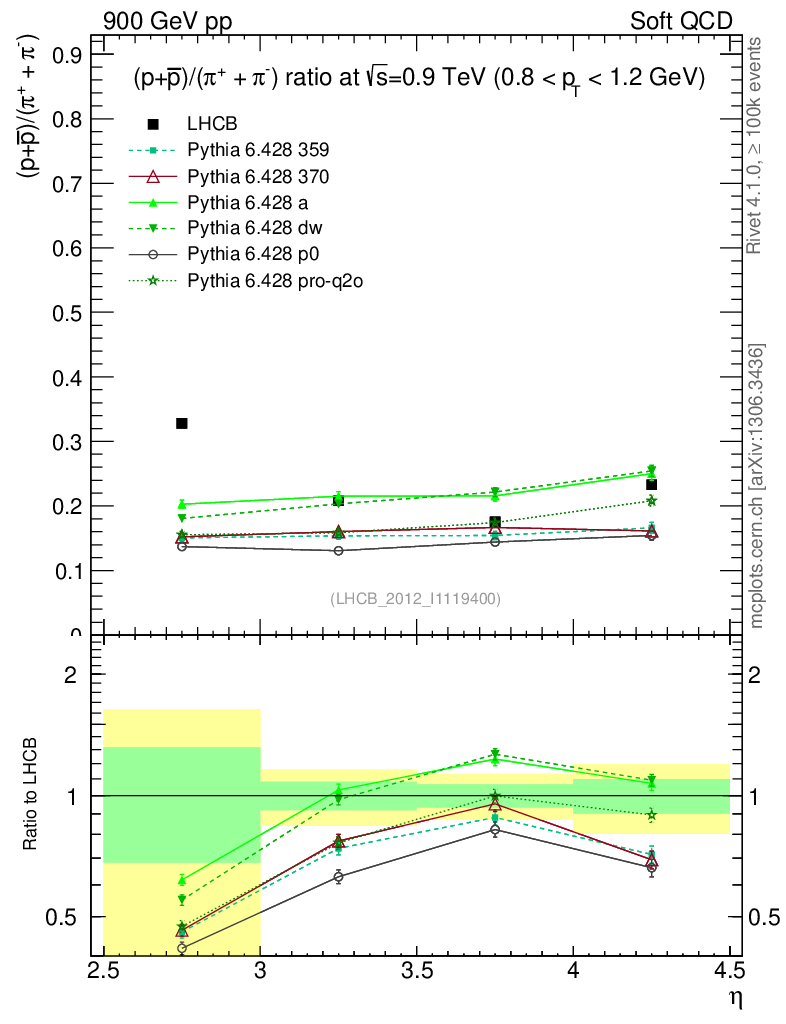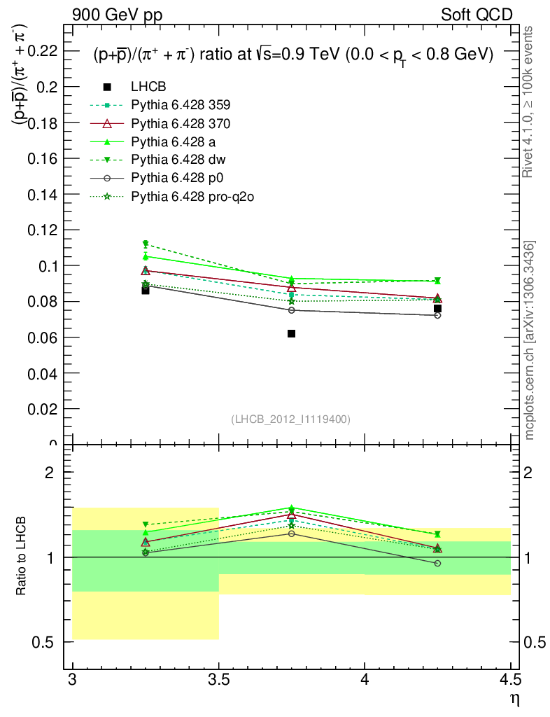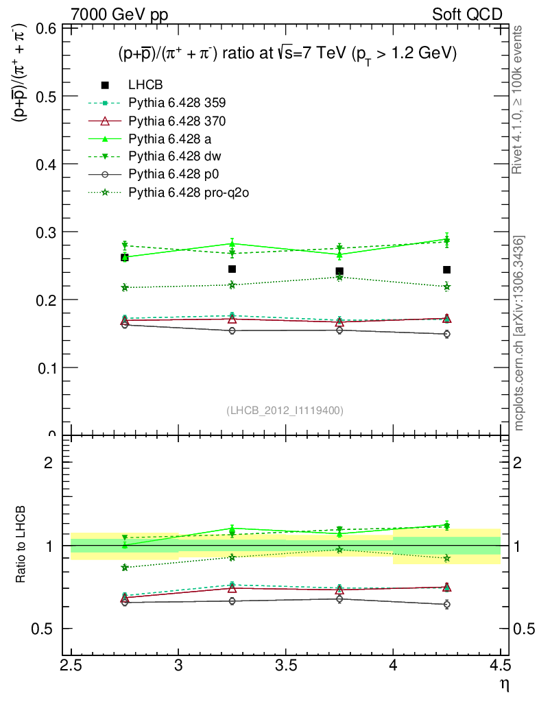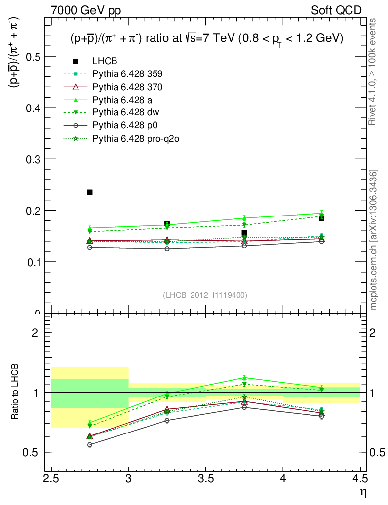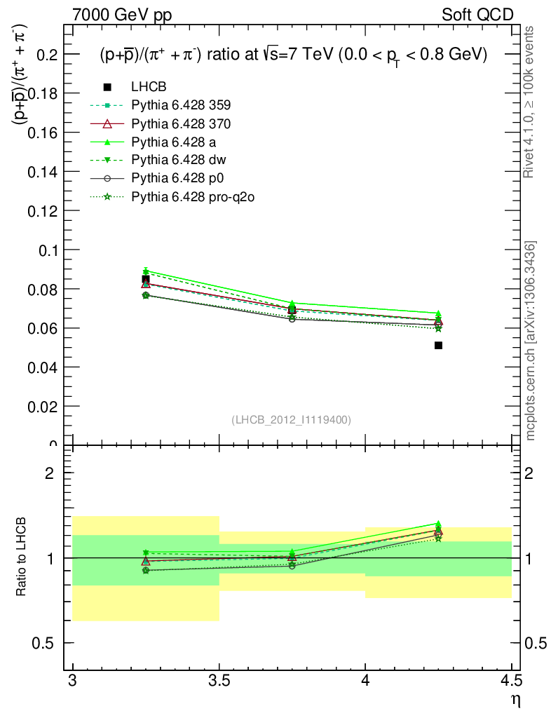 Soft QCD (inelastic) : Identified Particles : Ratios : (pbar+p)/(π-+π+) vs |y|