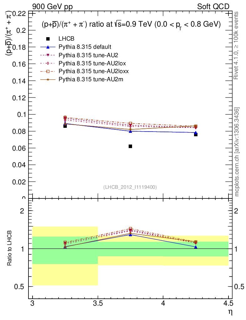 Soft QCD (inelastic) : Identified Particles : Ratios : (pbar+p)/(π-+π+) vs |y|
