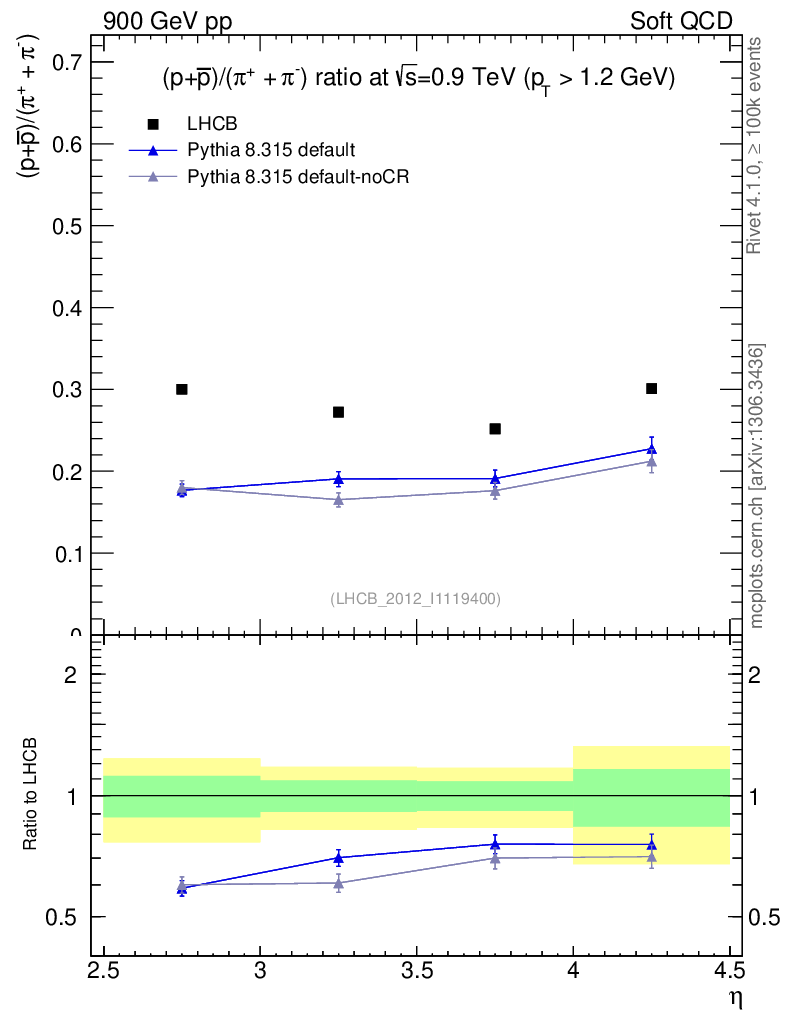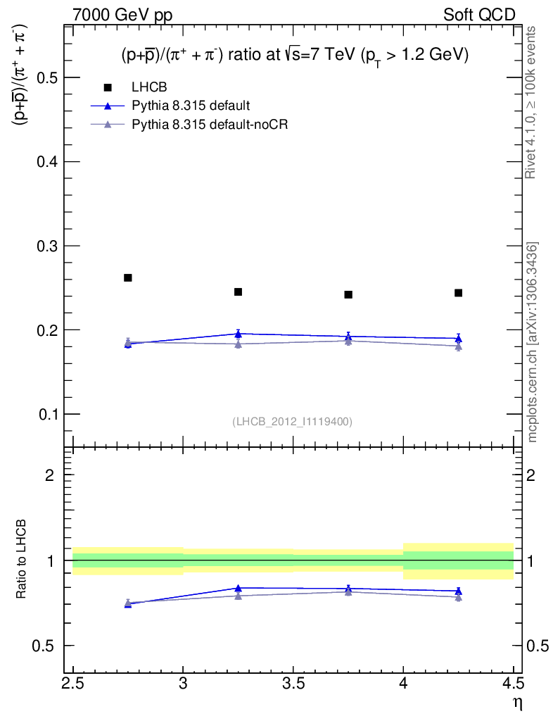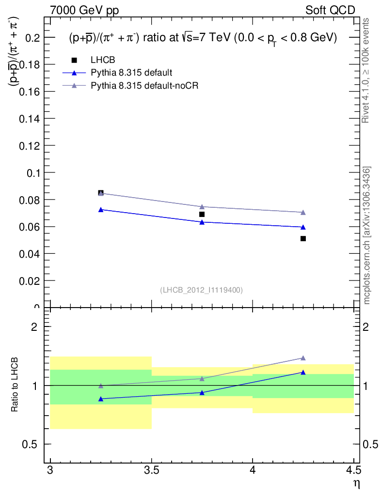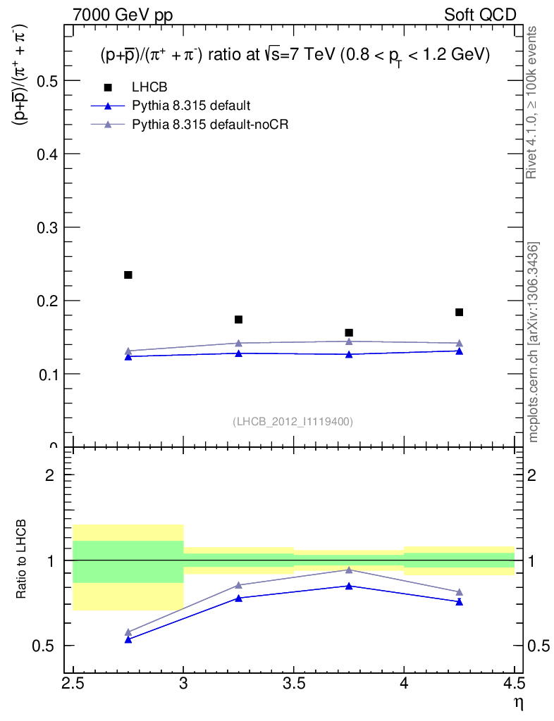 Soft QCD (inelastic) : Identified Particles : Ratios : (pbar+p)/(π-+π+) vs |y|