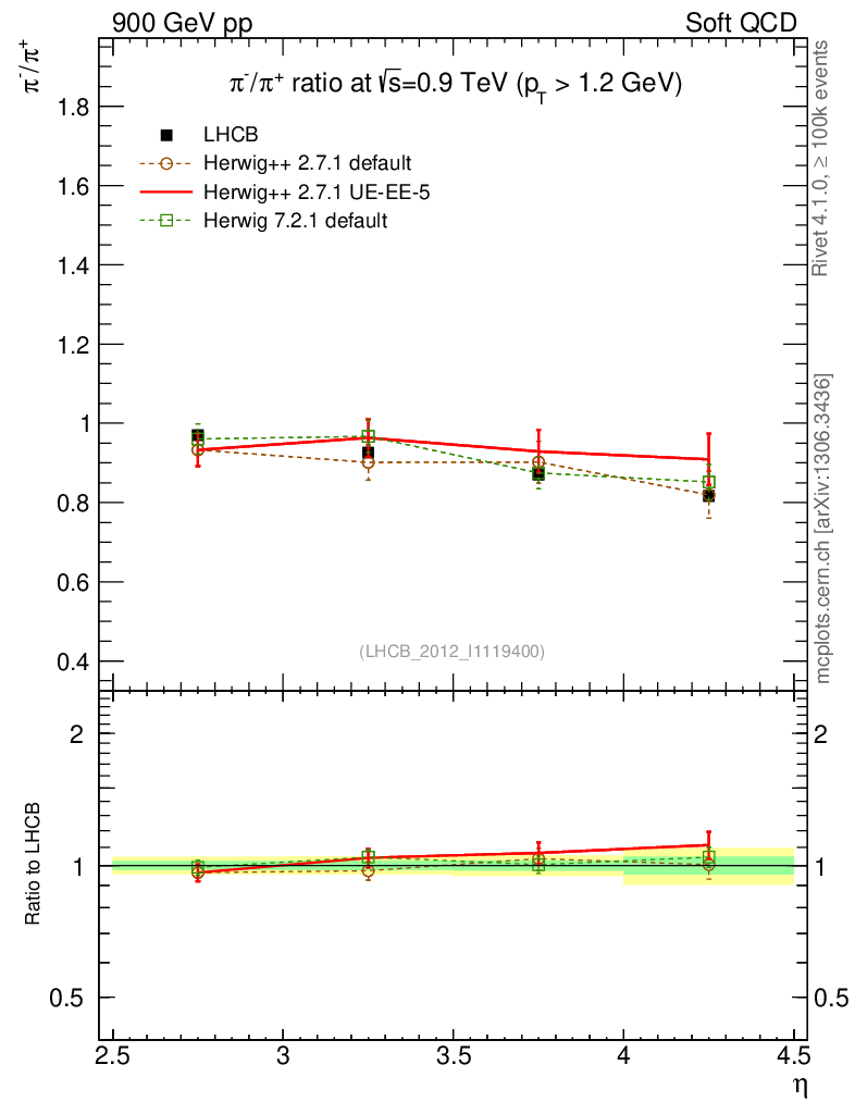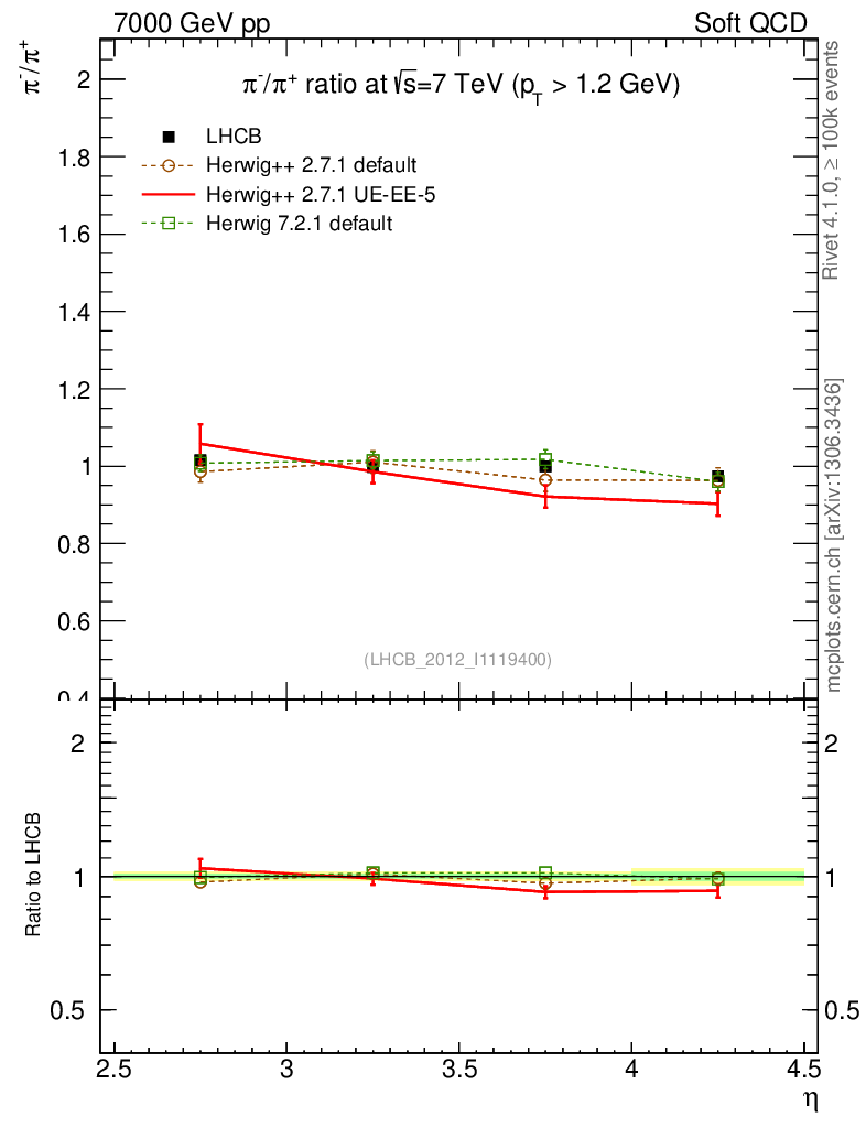 Soft QCD (inelastic) : Identified Particles : Ratios : π-/π+ vs |y|