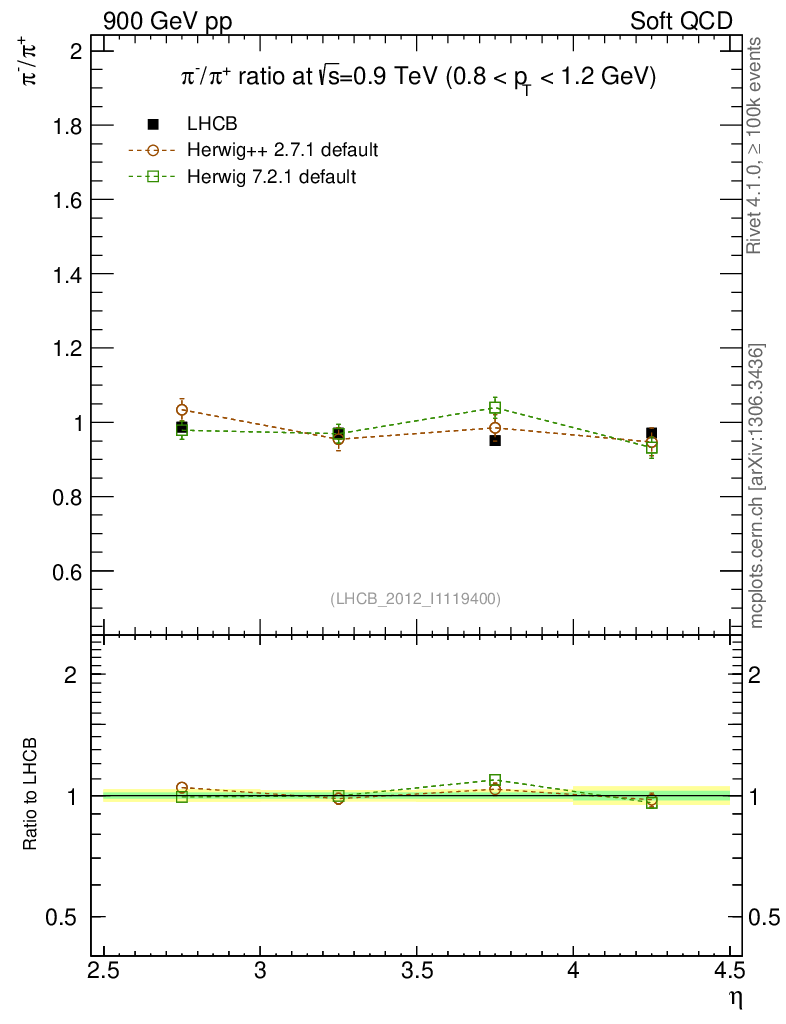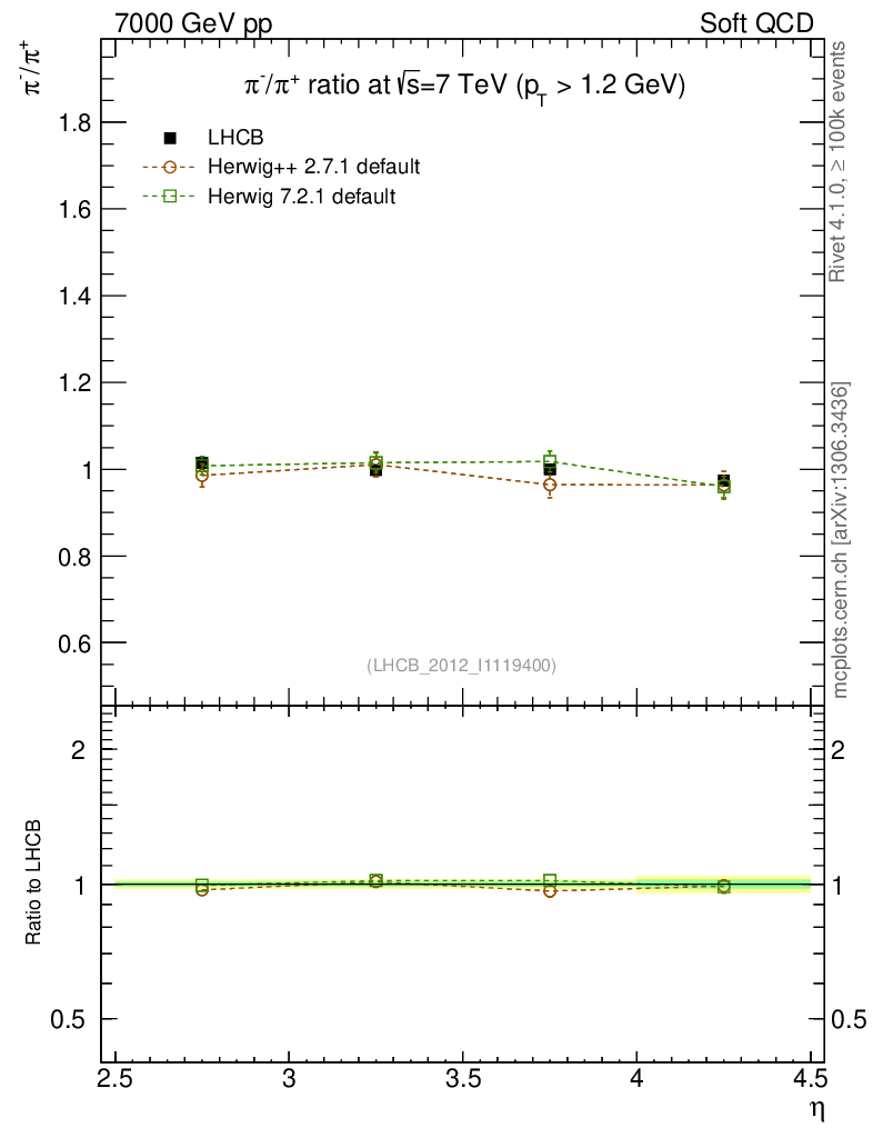 Soft QCD (inelastic) : Identified Particles : Ratios : π-/π+ vs |y|