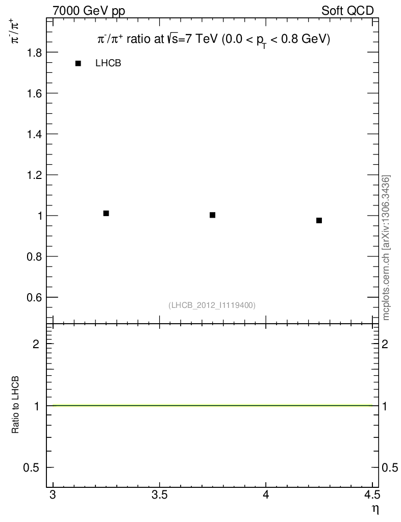 Soft QCD (inelastic) : Identified Particles : Ratios : π-/π+ vs |y|