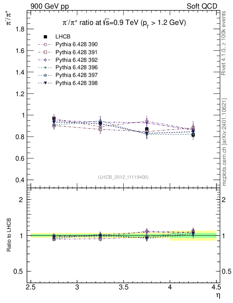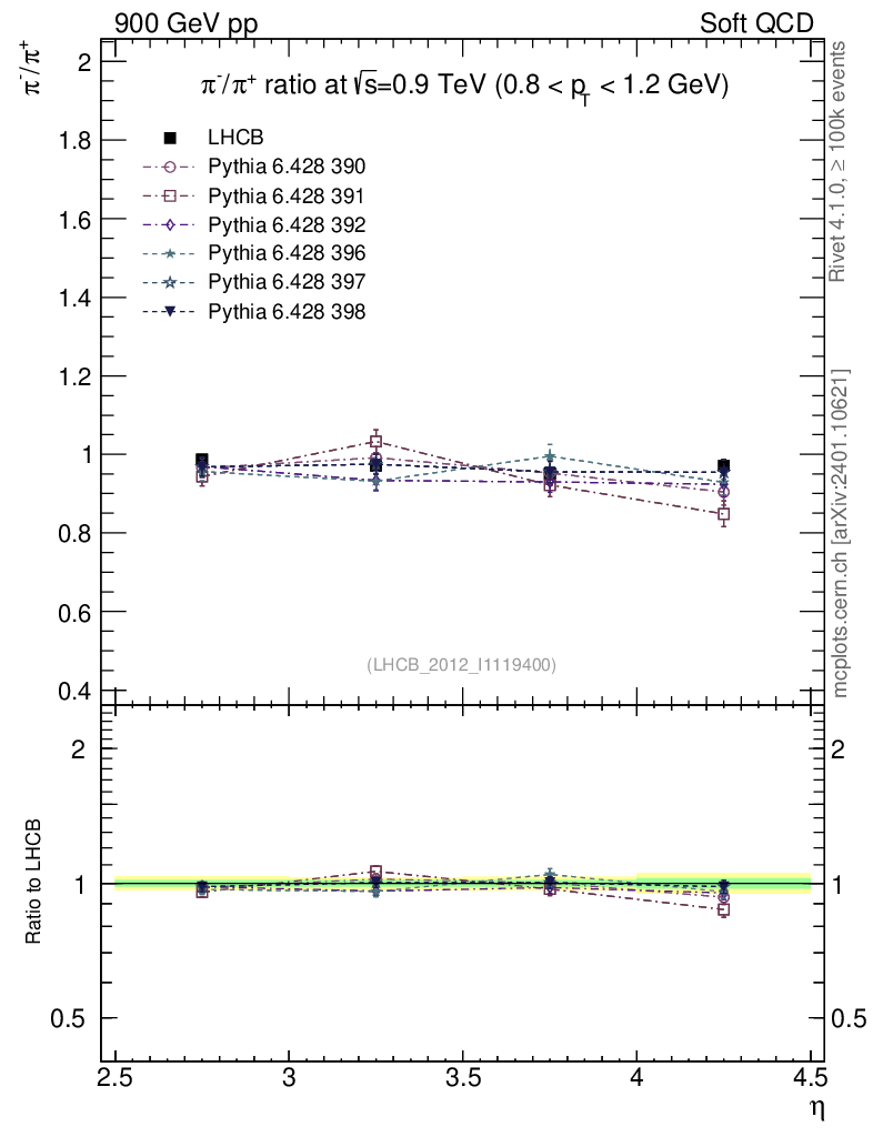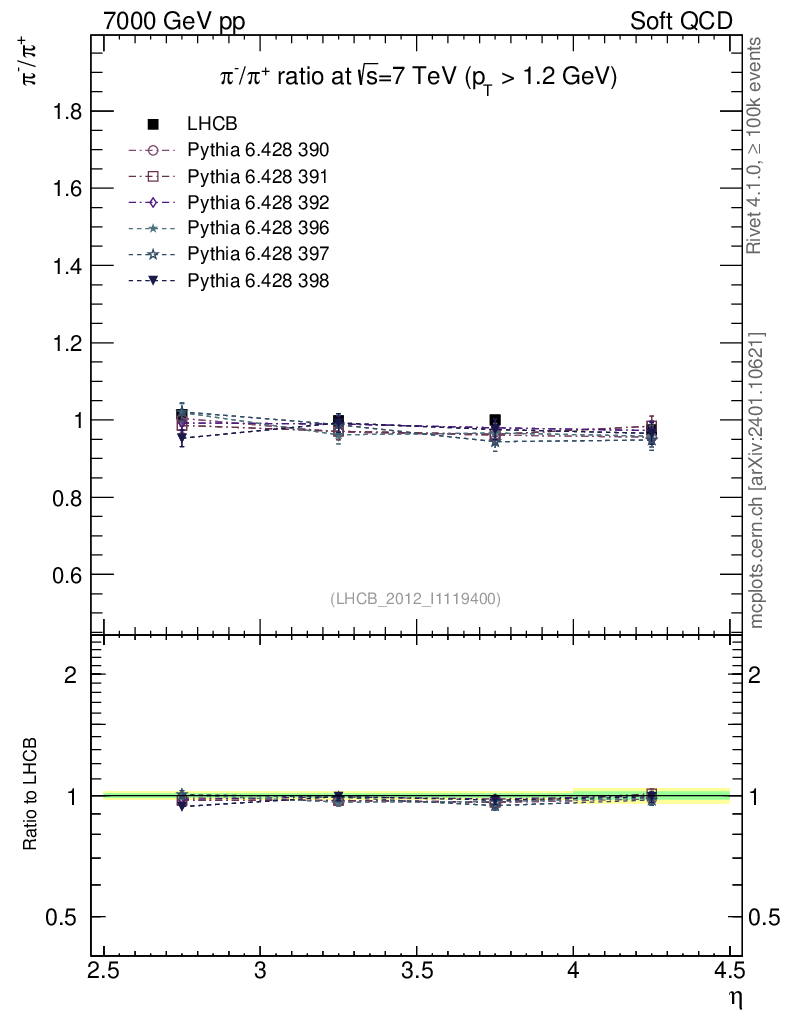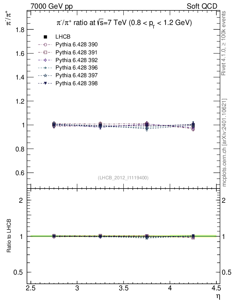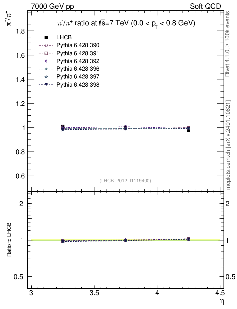 Soft QCD (inelastic) : Identified Particles : Ratios : π-/π+ vs |y|