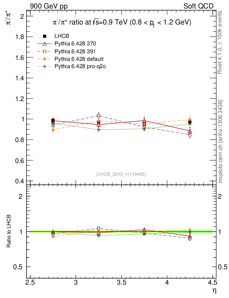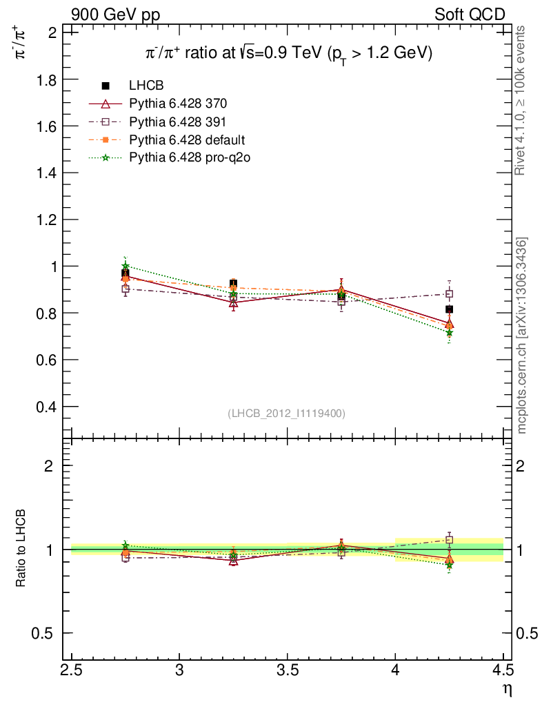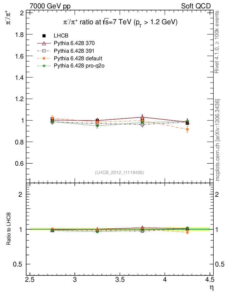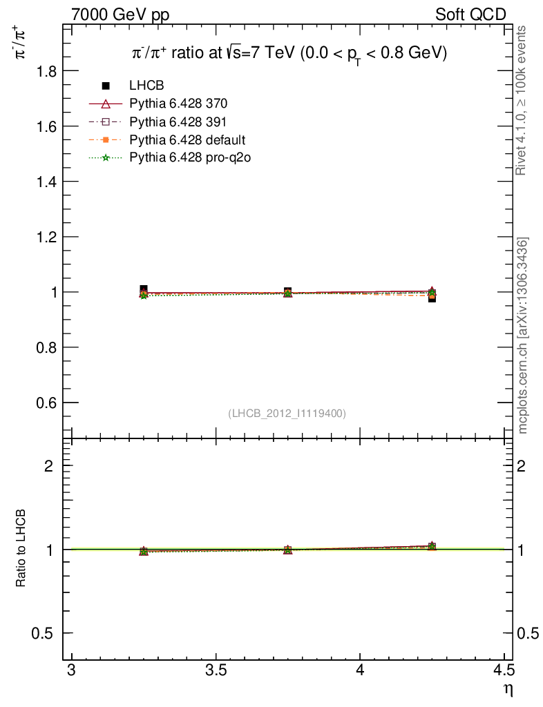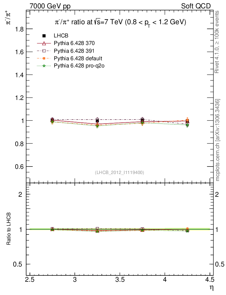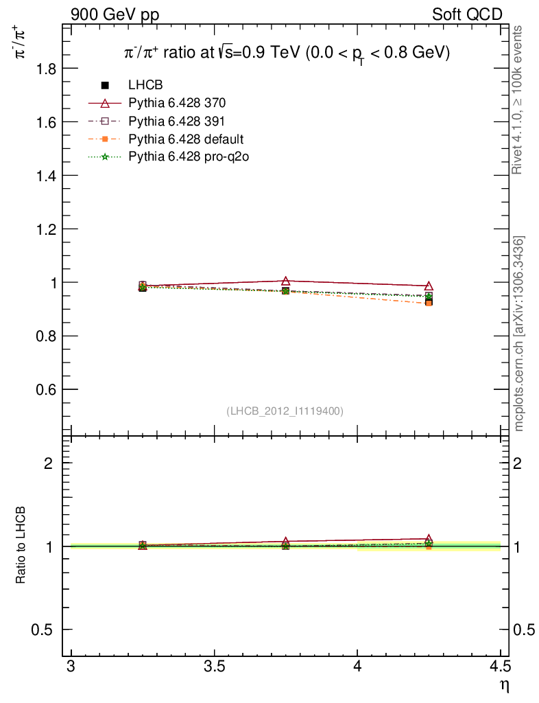 Soft QCD (inelastic) : Identified Particles : Ratios : π-/π+ vs |y|