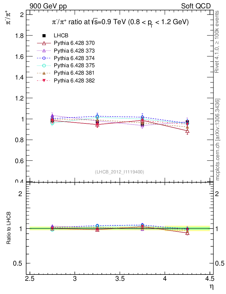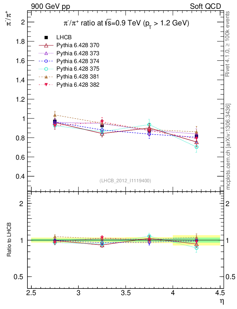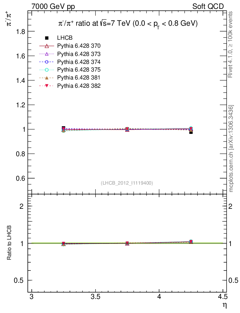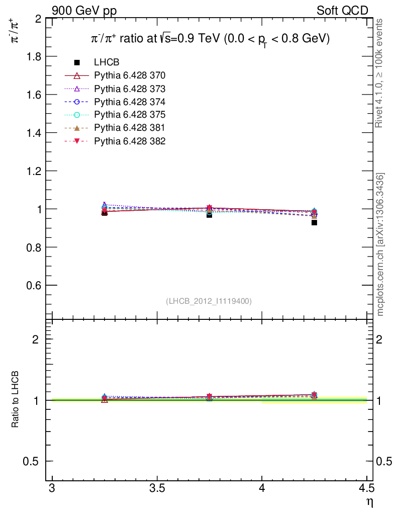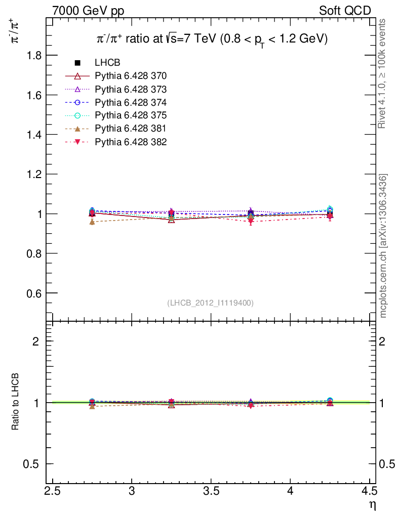 Soft QCD (inelastic) : Identified Particles : Ratios : π-/π+ vs |y|