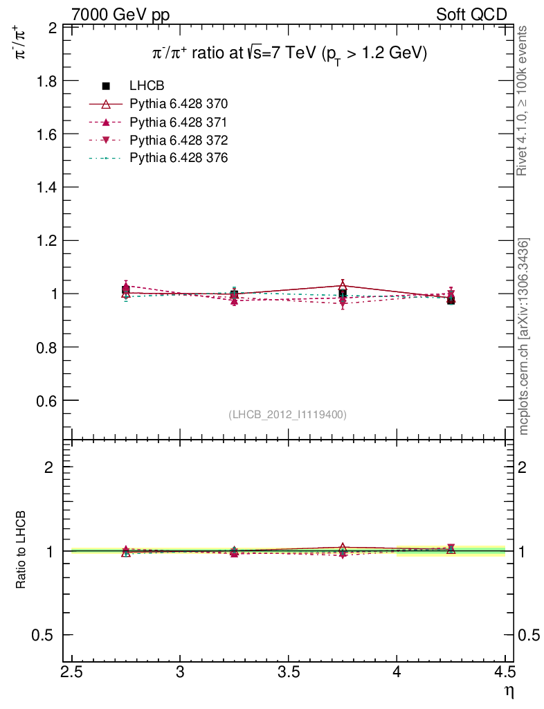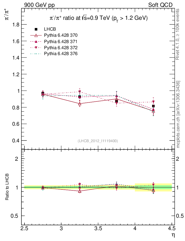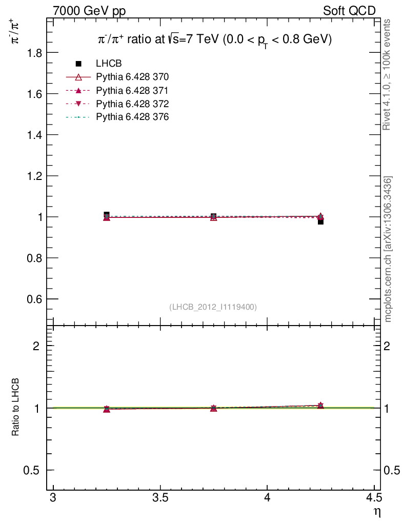 Soft QCD (inelastic) : Identified Particles : Ratios : π-/π+ vs |y|
