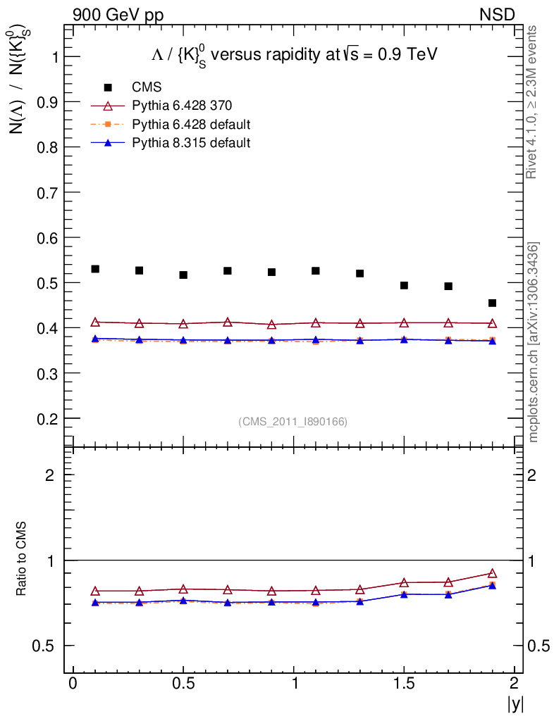 Soft QCD (nsd only) : Identified Particles : Ratios : Λ/K0S vs |y|