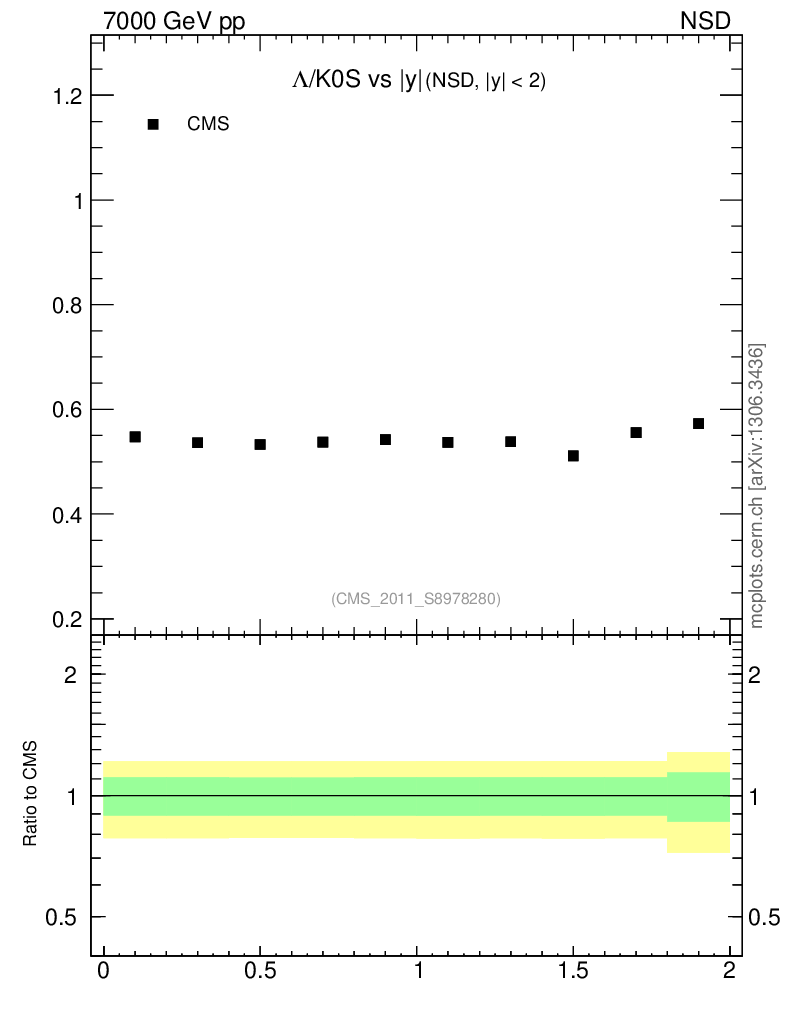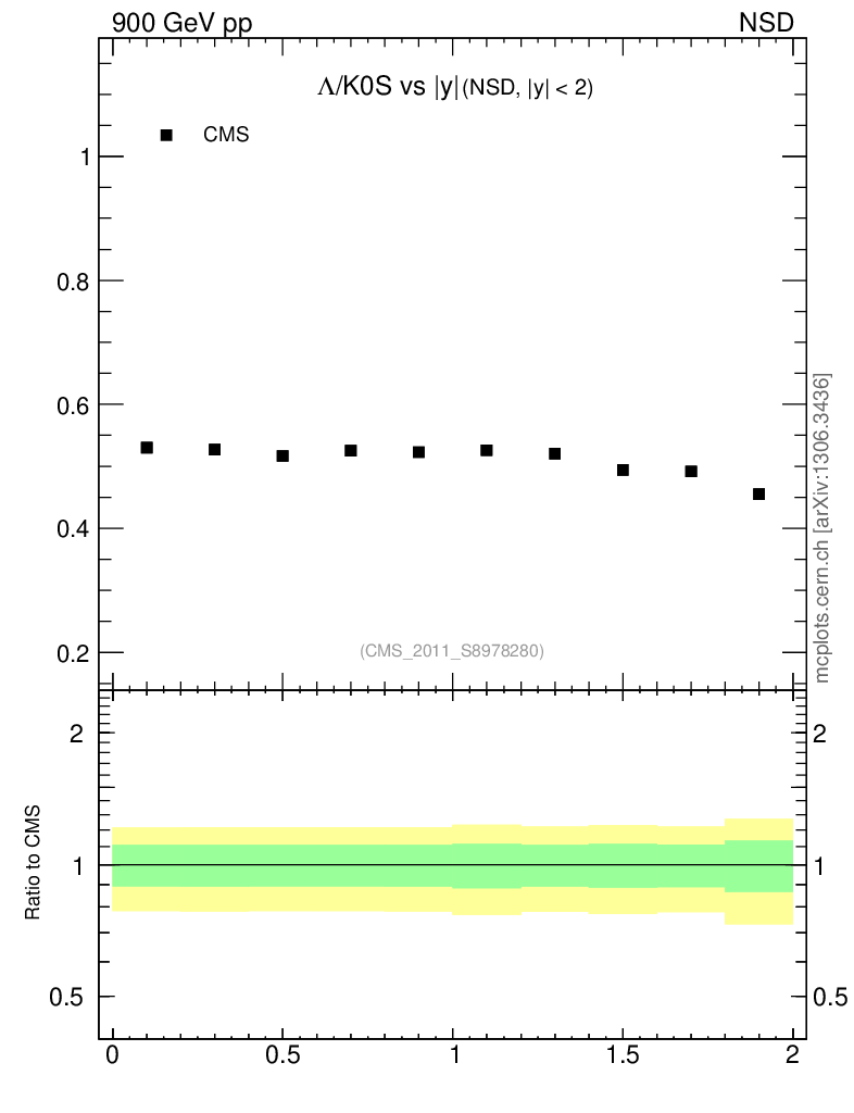 Soft QCD (nsd only) : Identified Particles : Ratios : Λ/K0S vs |y|