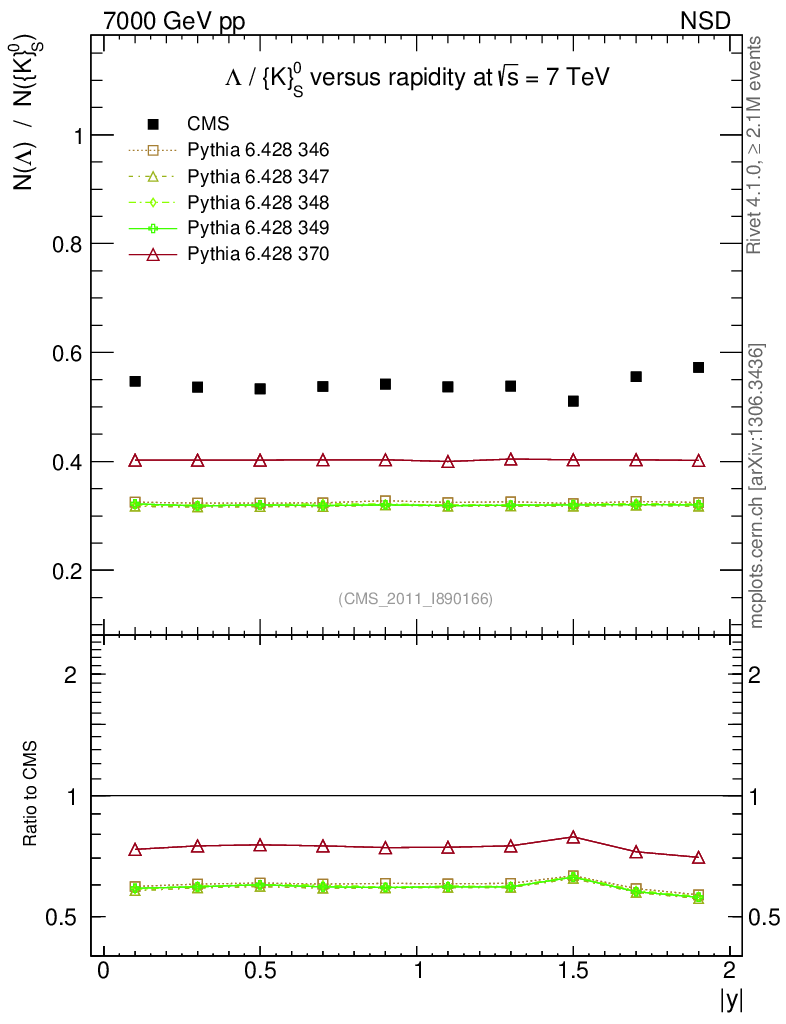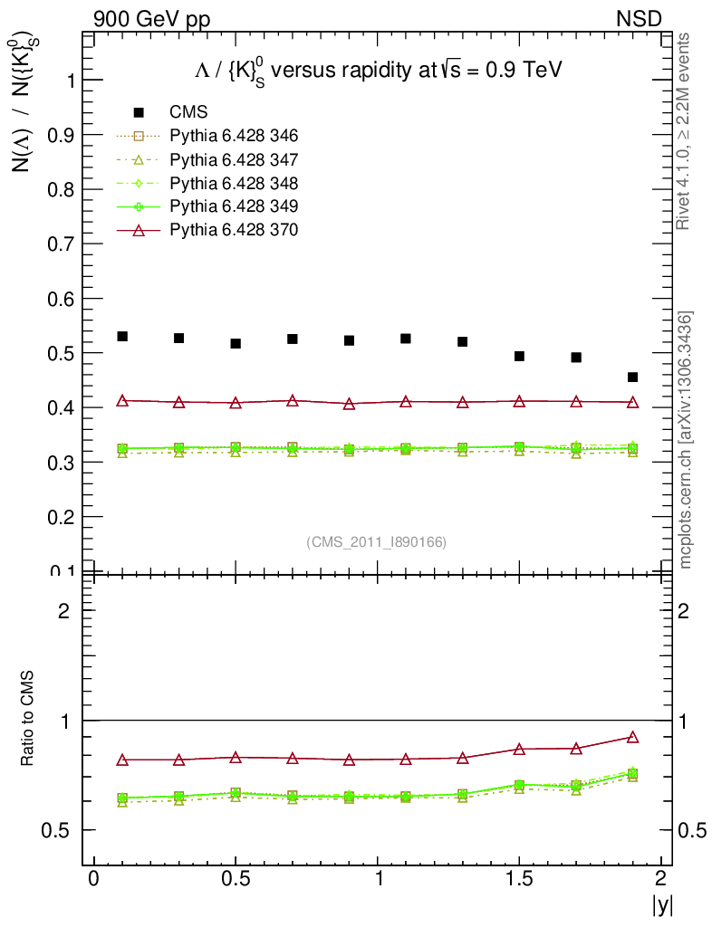 Soft QCD (nsd only) : Identified Particles : Ratios : Λ/K0S vs |y|