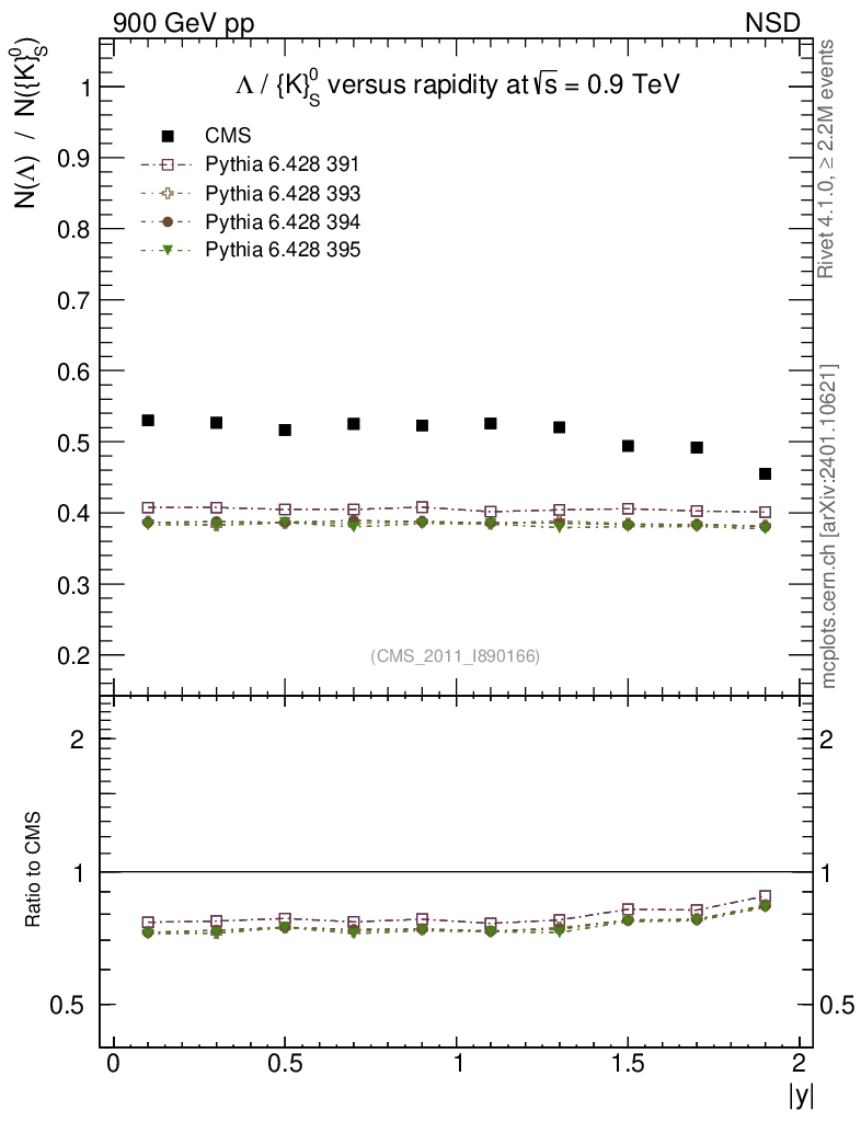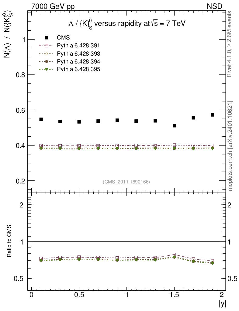 Soft QCD (nsd only) : Identified Particles : Ratios : Λ/K0S vs |y|