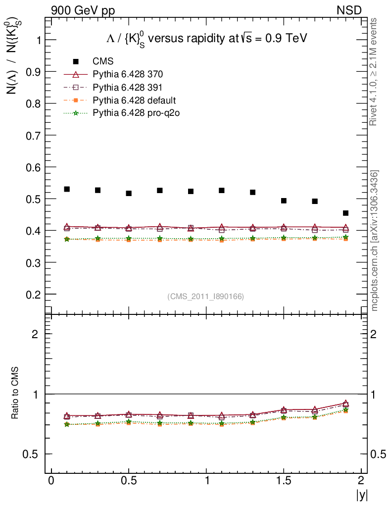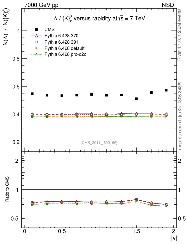 Soft QCD (nsd only) : Identified Particles : Ratios : Λ/K0S vs |y|