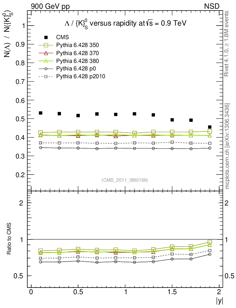 Soft QCD (nsd only) : Identified Particles : Ratios : Λ/K0S vs |y|