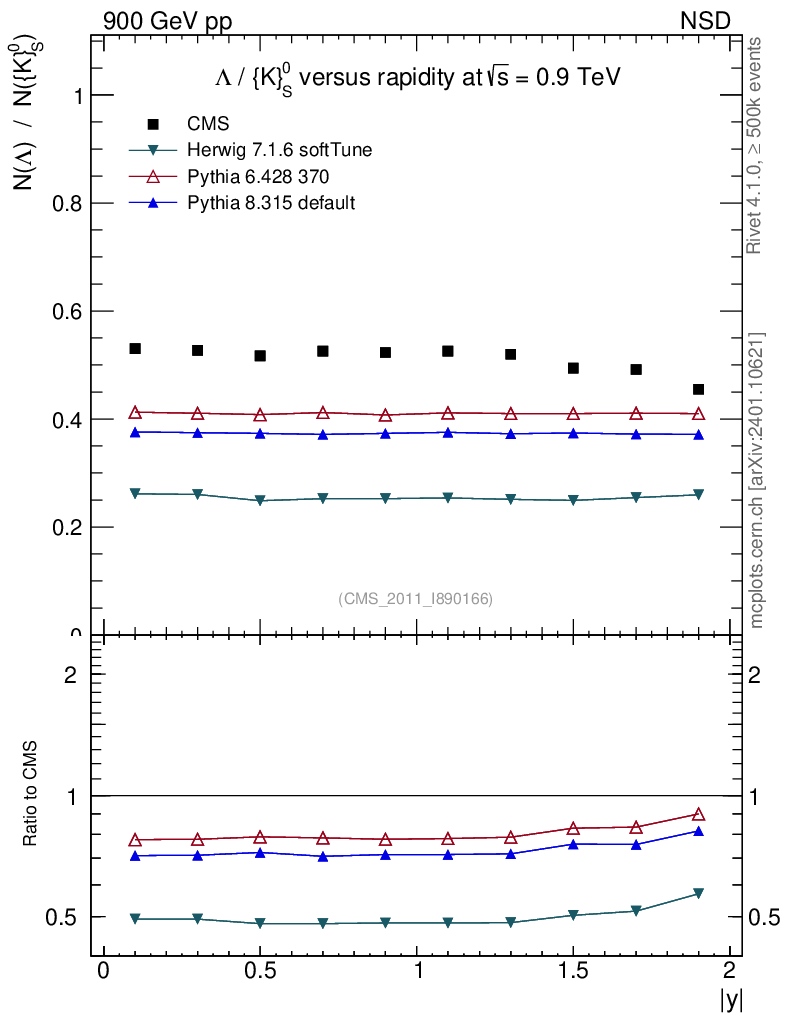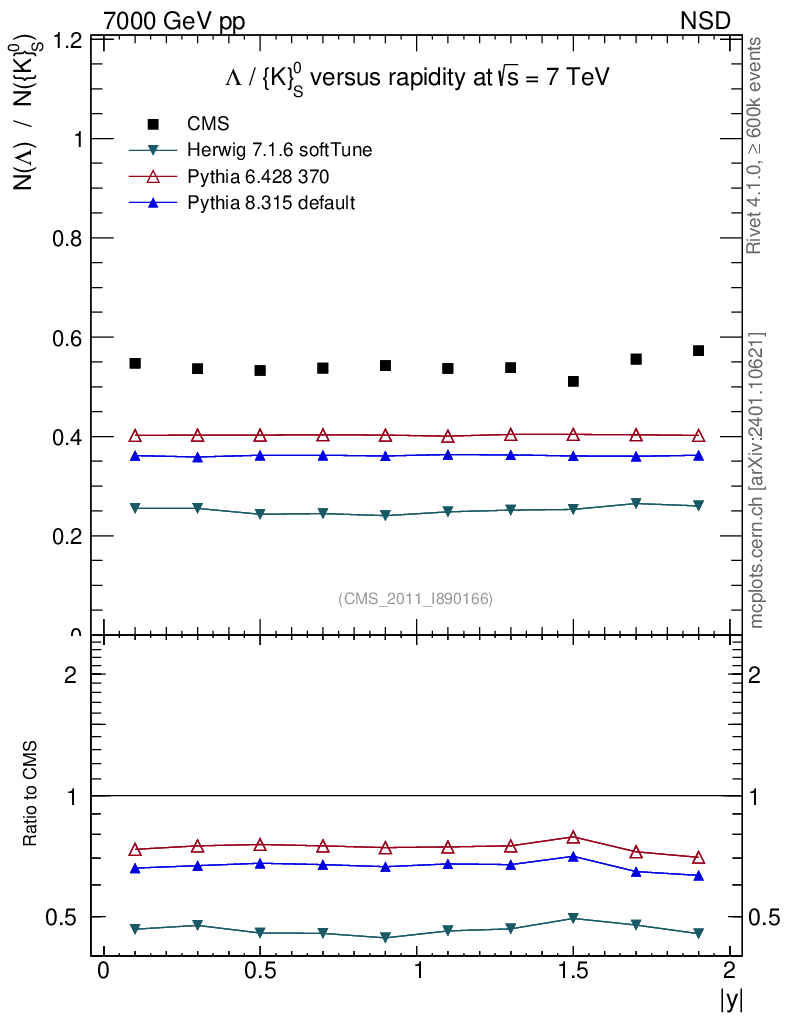 Soft QCD (nsd only) : Identified Particles : Ratios : Λ/K0S vs |y|