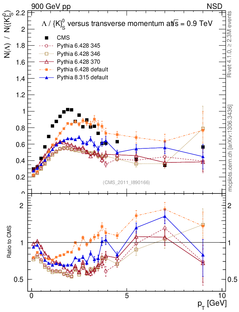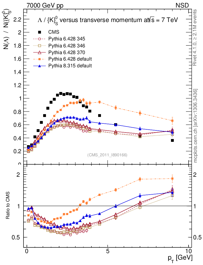 Soft QCD (nsd only) : Identified Particles : Ratios : Λ/K0S vs pT