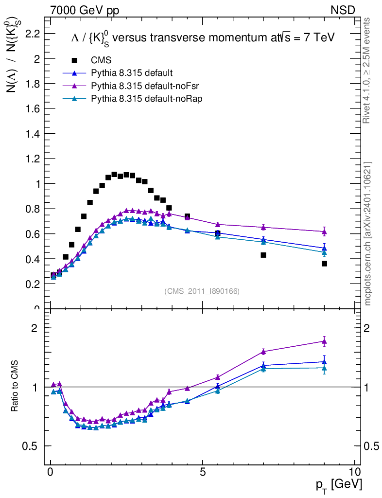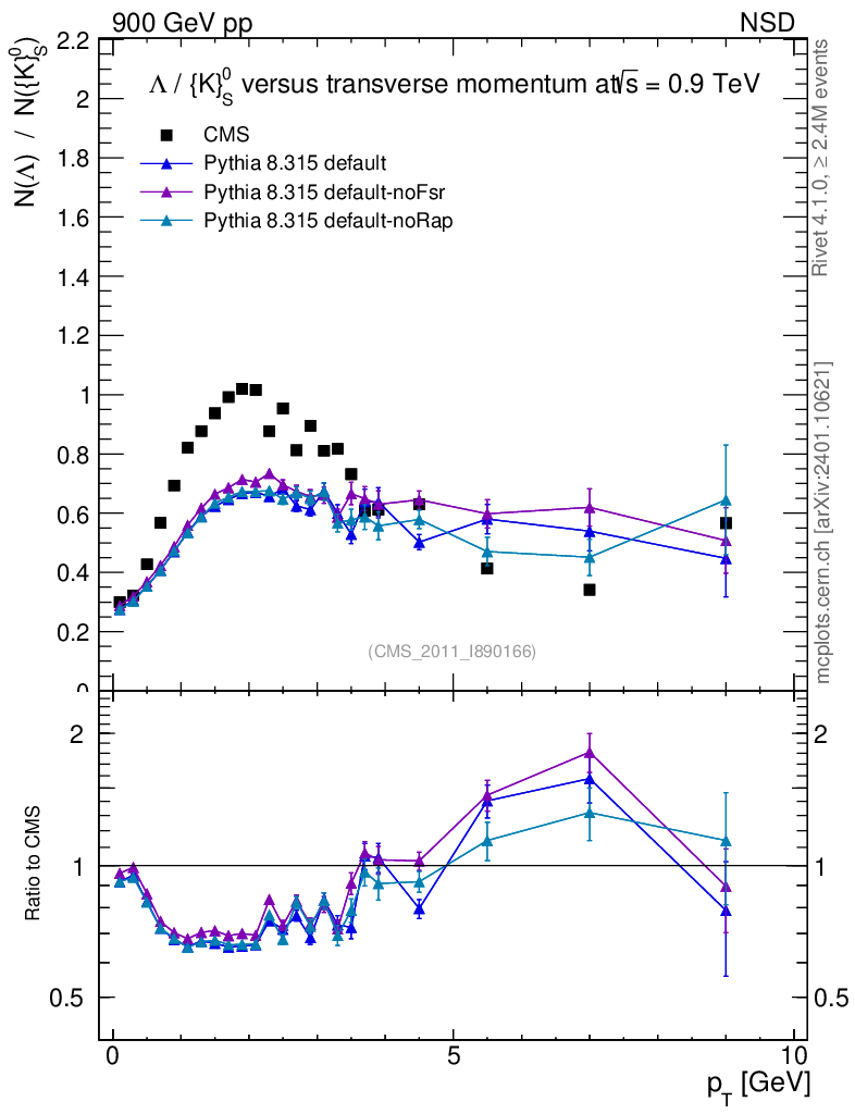 Soft QCD (nsd only) : Identified Particles : Ratios : Λ/K0S vs pT