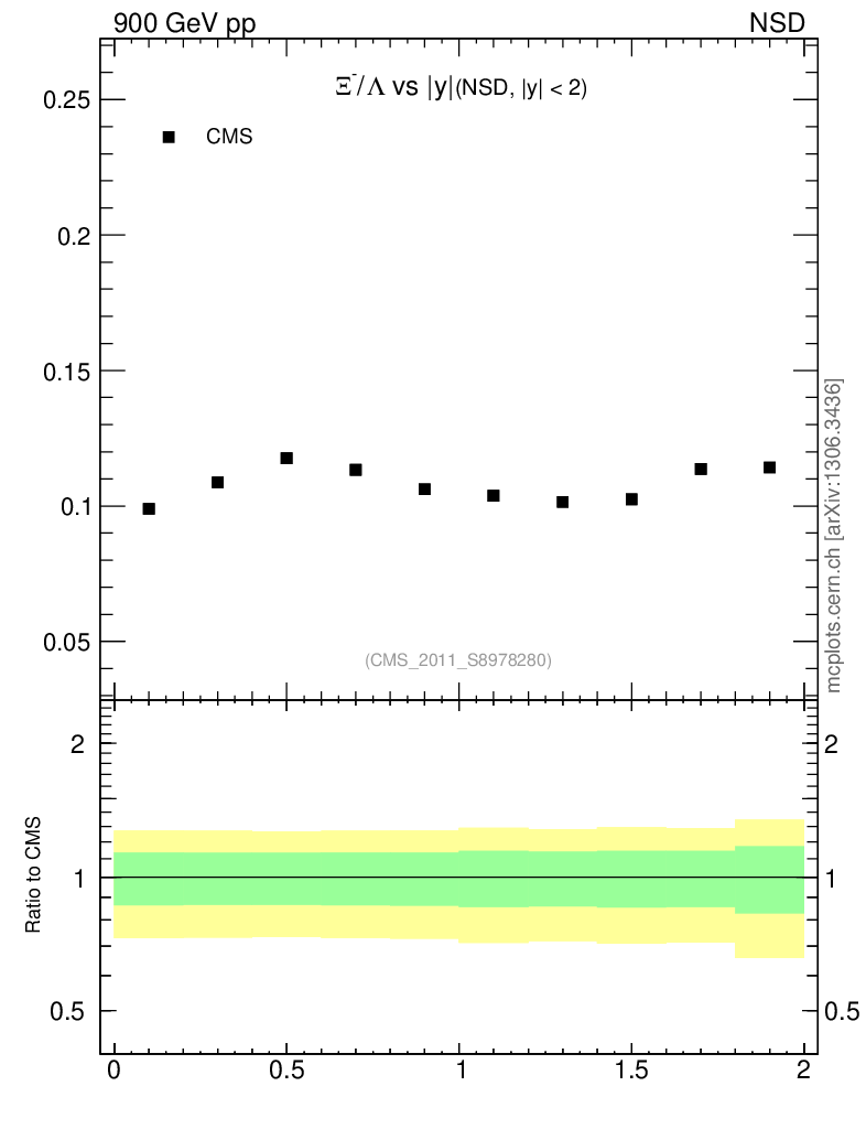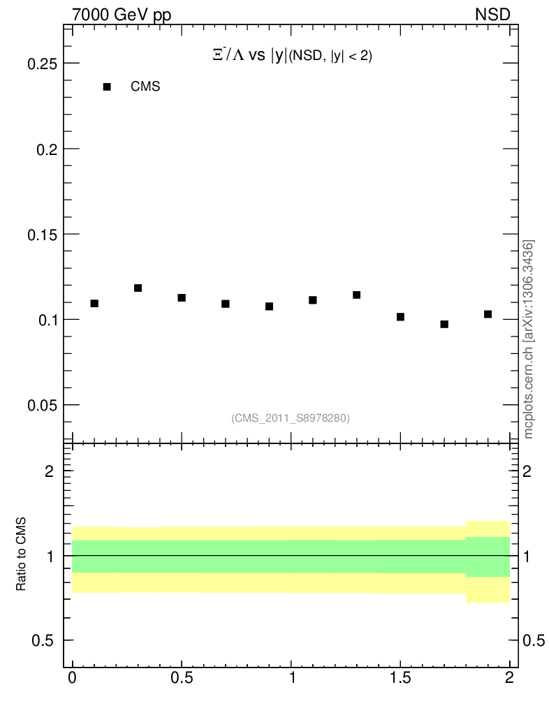 Soft QCD (nsd only) : Identified Particles : Ratios : Ξ-/Λ vs |y|
