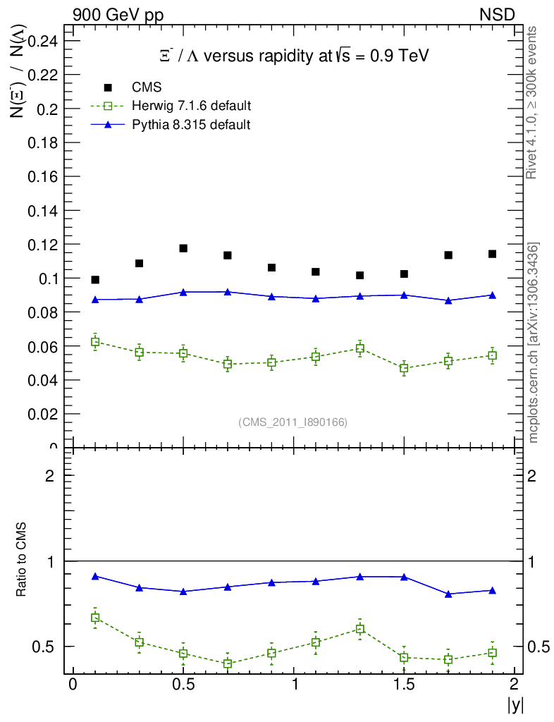 Soft QCD (nsd only) : Identified Particles : Ratios : Ξ-/Λ vs |y|