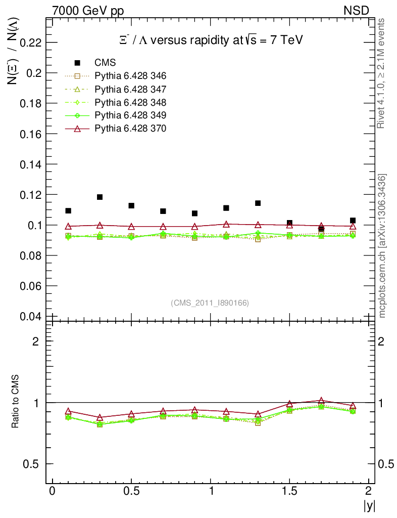 Soft QCD (nsd only) : Identified Particles : Ratios : Ξ-/Λ vs |y|