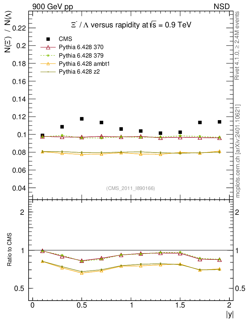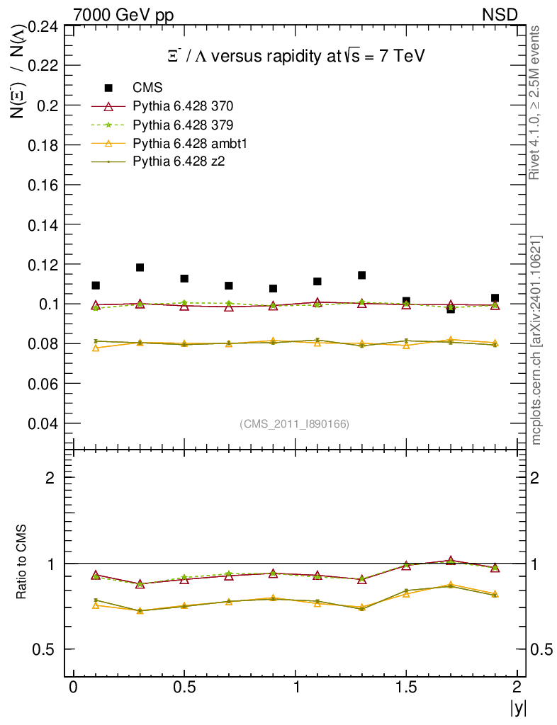 Soft QCD (nsd only) : Identified Particles : Ratios : Ξ-/Λ vs |y|