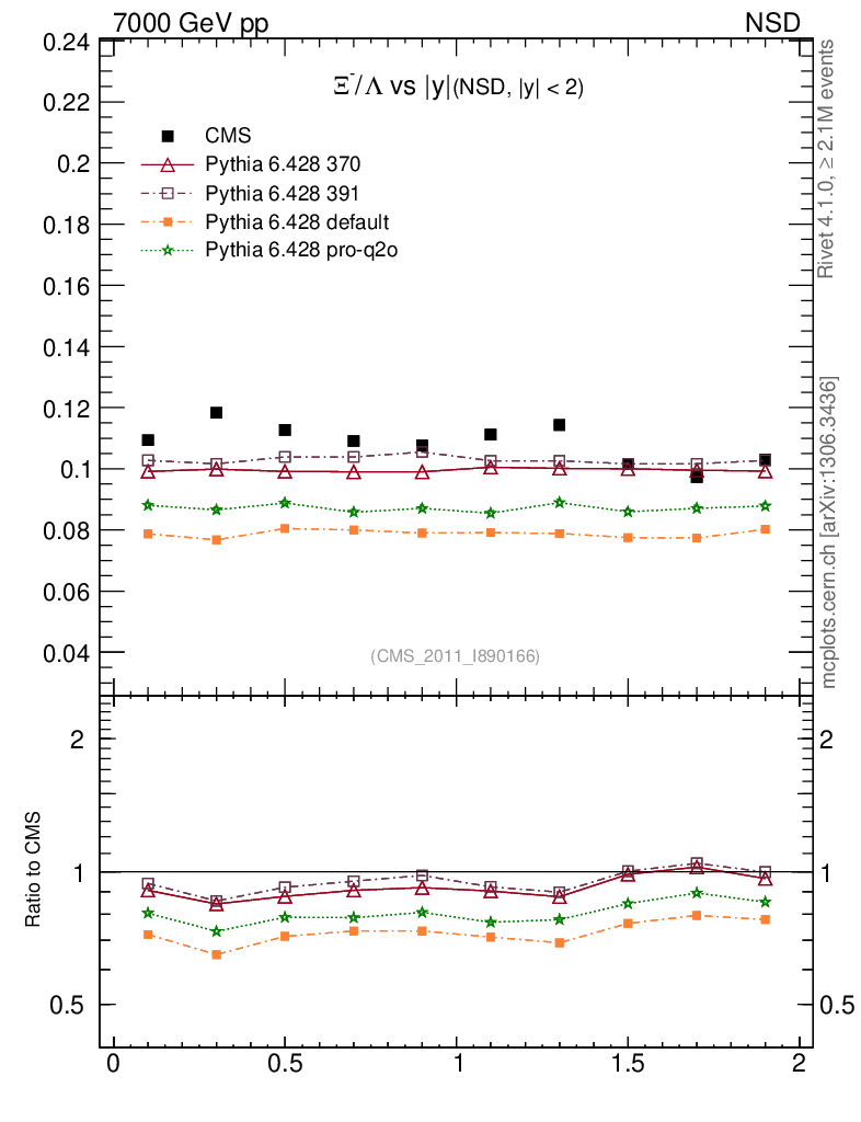 Soft QCD (nsd only) : Identified Particles : Ratios : Ξ-/Λ vs |y|