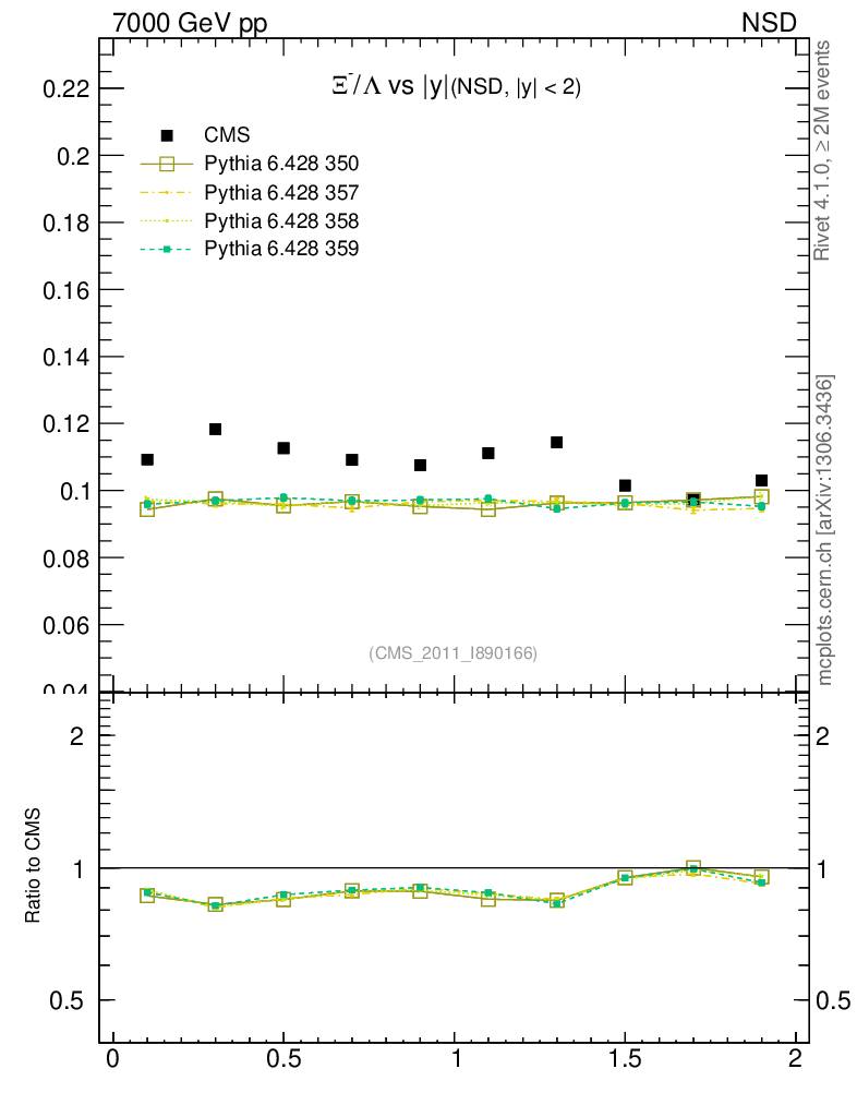 Soft QCD (nsd only) : Identified Particles : Ratios : Ξ-/Λ vs |y|