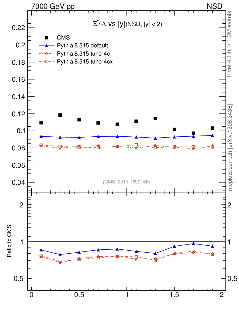 Soft QCD (nsd only) : Identified Particles : Ratios : Ξ-/Λ vs |y|