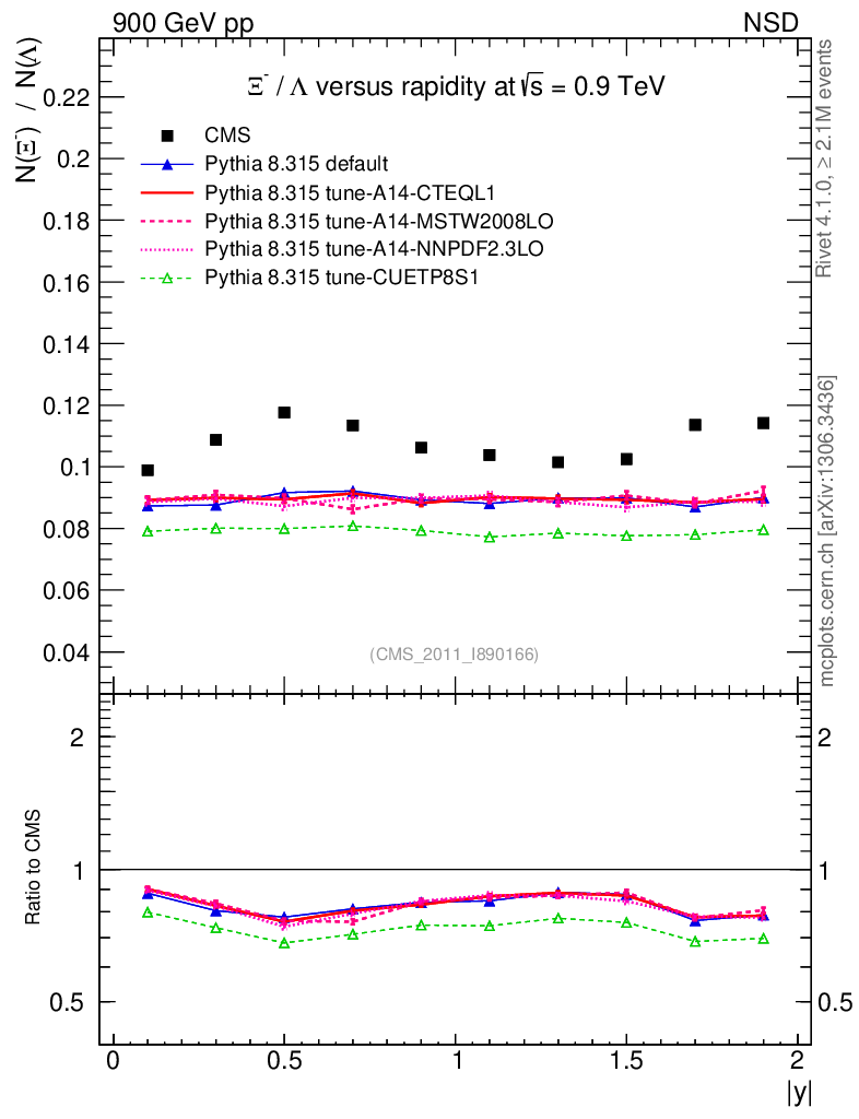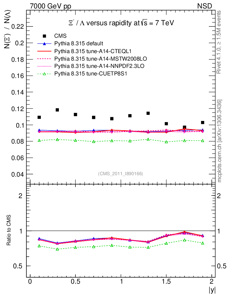 Soft QCD (nsd only) : Identified Particles : Ratios : Ξ-/Λ vs |y|