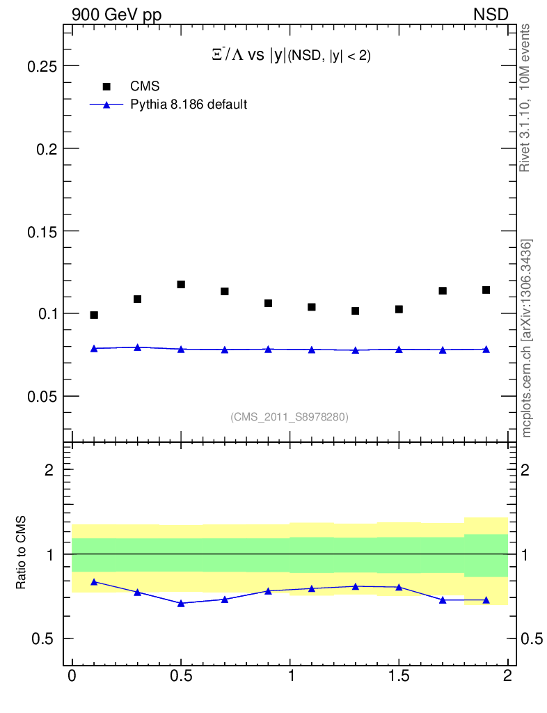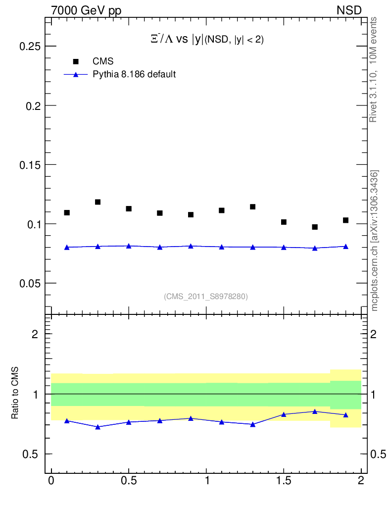 Soft QCD (nsd only) : Identified Particles : Ratios : Ξ-/Λ vs |y|