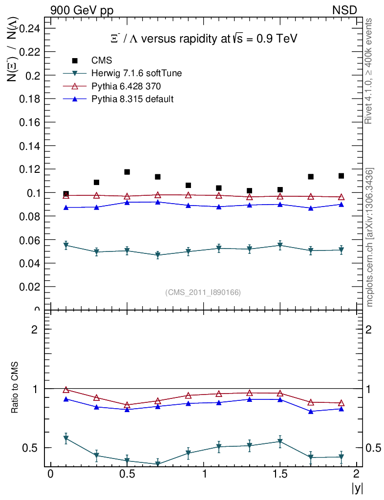 Soft QCD (nsd only) : Identified Particles : Ratios : Ξ-/Λ vs |y|