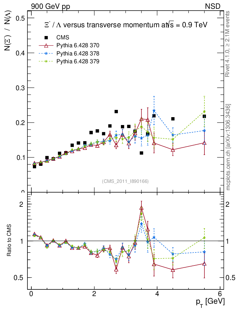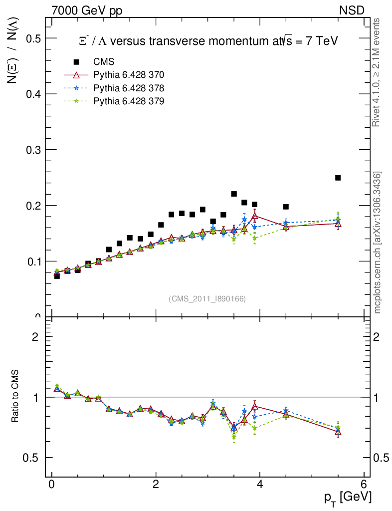 Soft QCD (nsd only) : Identified Particles : Ratios : Ξ-/Λ vs pT