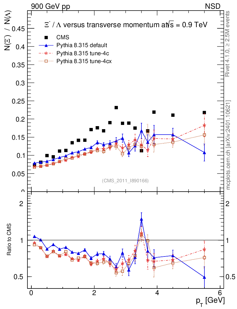 Soft QCD (nsd only) : Identified Particles : Ratios : Ξ-/Λ vs pT