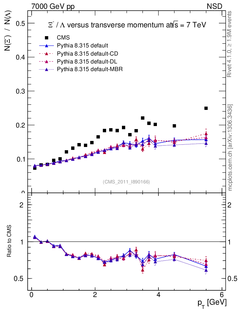 Soft QCD (nsd only) : Identified Particles : Ratios : Ξ-/Λ vs pT