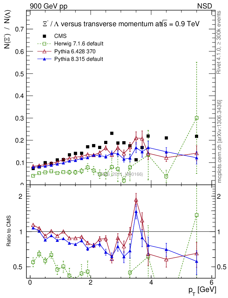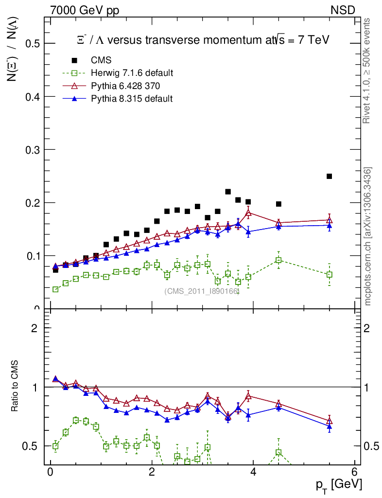 Soft QCD (nsd only) : Identified Particles : Ratios : Ξ-/Λ vs pT