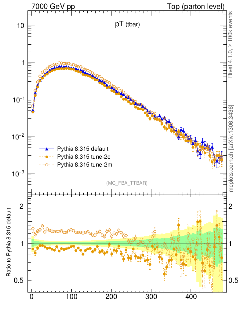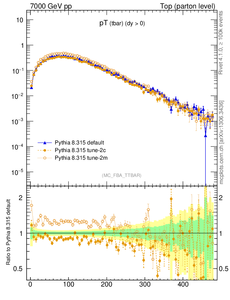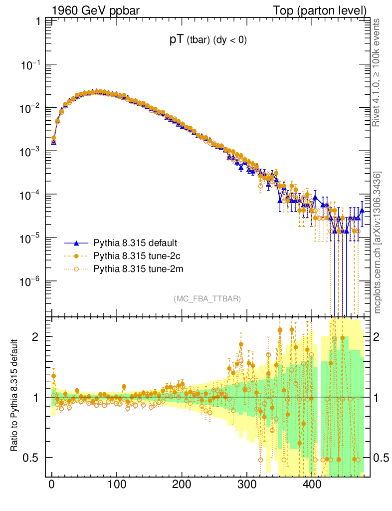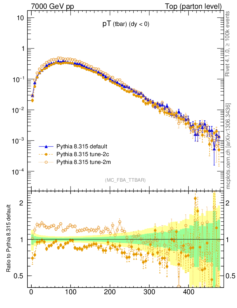 Top (parton level) : Individual tops : pT (tbar)