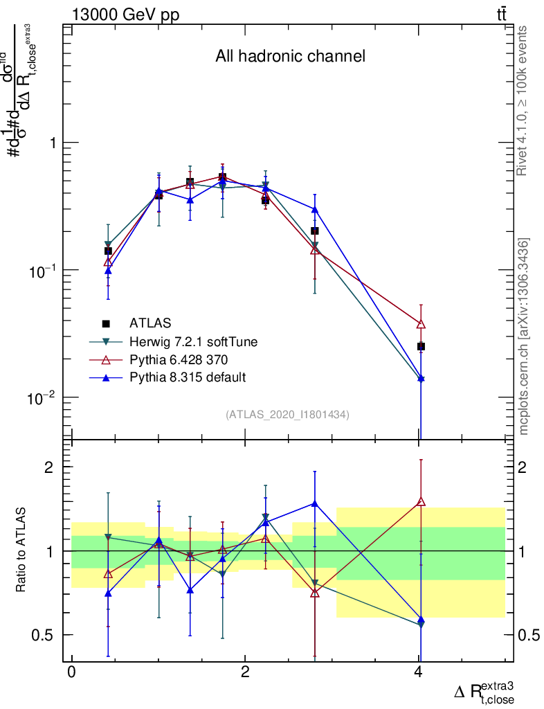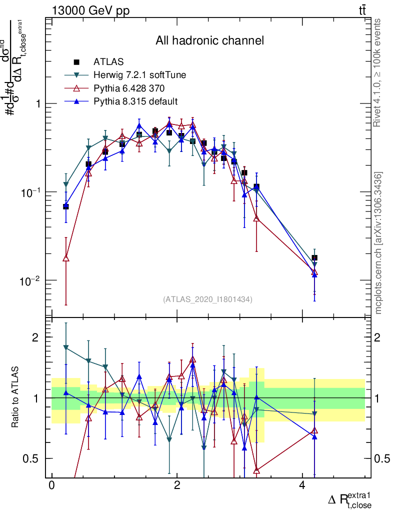 ) : ΔR(top, extra jet)