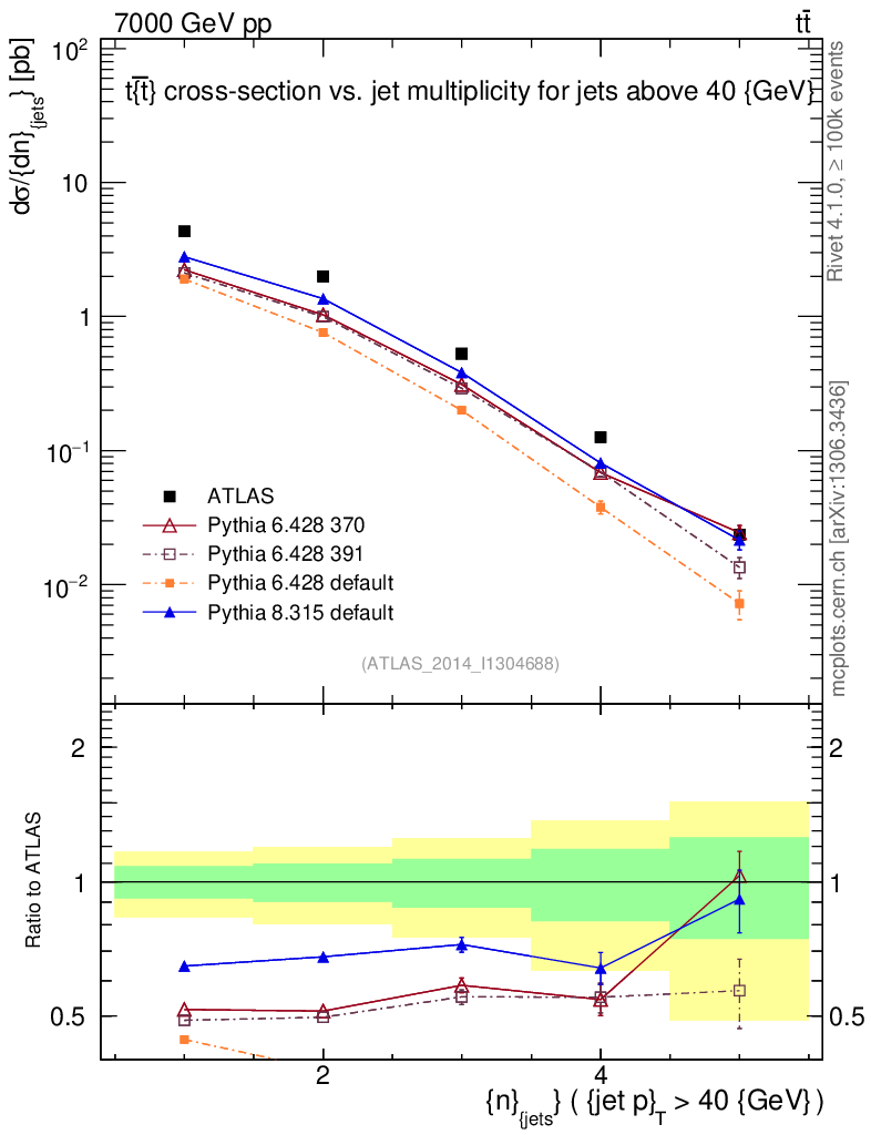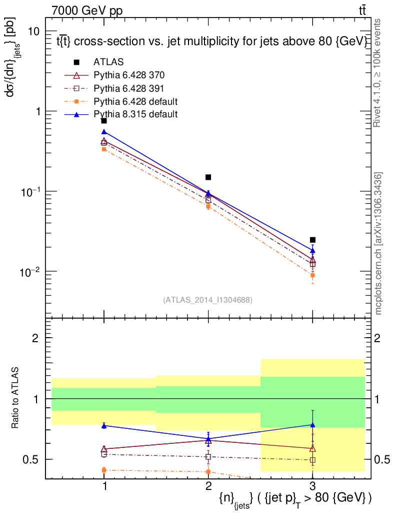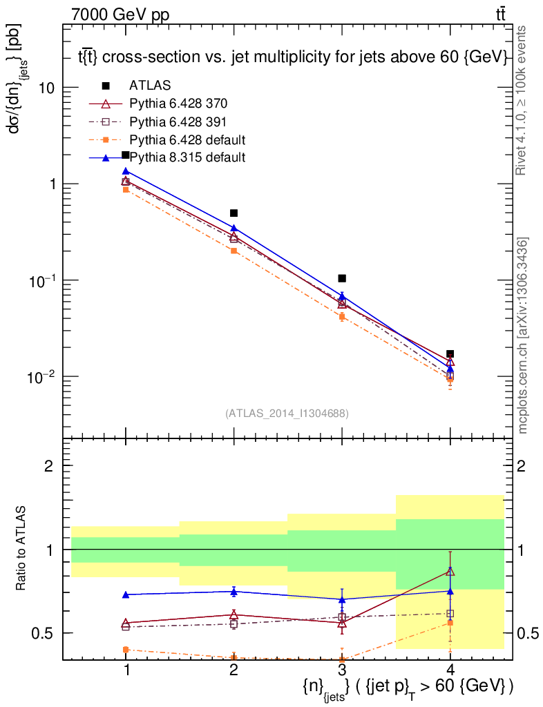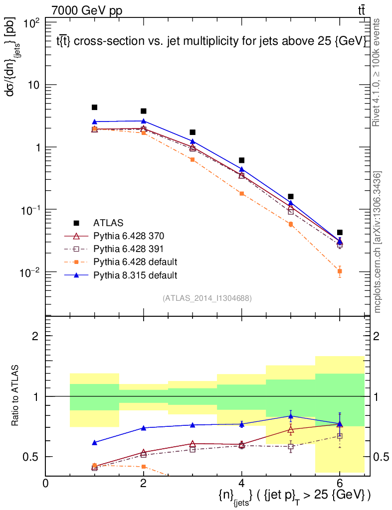 bjbj.m bjbj.pt bjt.dphi ej.pt ejej.dphi ΔR(extra jets) ejets.ht ΔR(extra, leading jet) ΔR(top, extra jet) Jet pT Lepton η Lepton pT Δφ(lepton,jet) ST(leptons, jets) nch sumpt Pouttop Top pT top.pt.ttbarRF Top rapidity topej.dphi topej.m χ(ttbar) Δφ(ttbar) Δy (ttbar) ttbar HT m(ttbar) Pcrossttbar ttbar pT ttbar.thetaStar Ttbar rapidity Mean rapidity ttbarej.ht ttbarej.m Cross sections