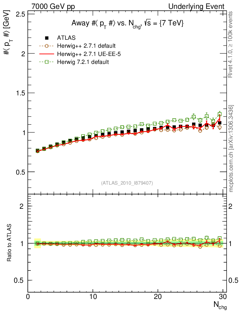 Underlying Event : Away : <pT> vs Nch