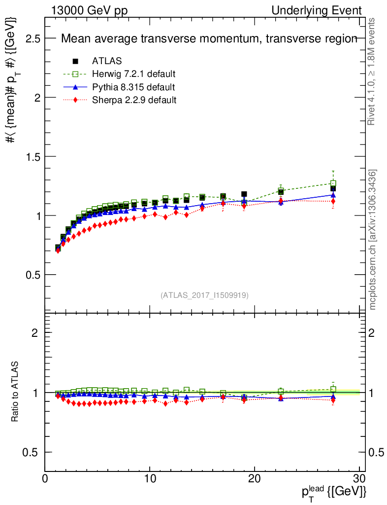 Underlying Event : Transverse : <pT> vs pTlead