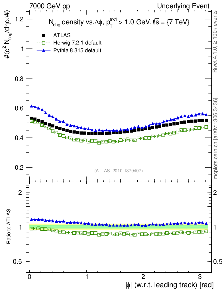 Underlying Event : Δφ distributions : <Nch> vs Δφ