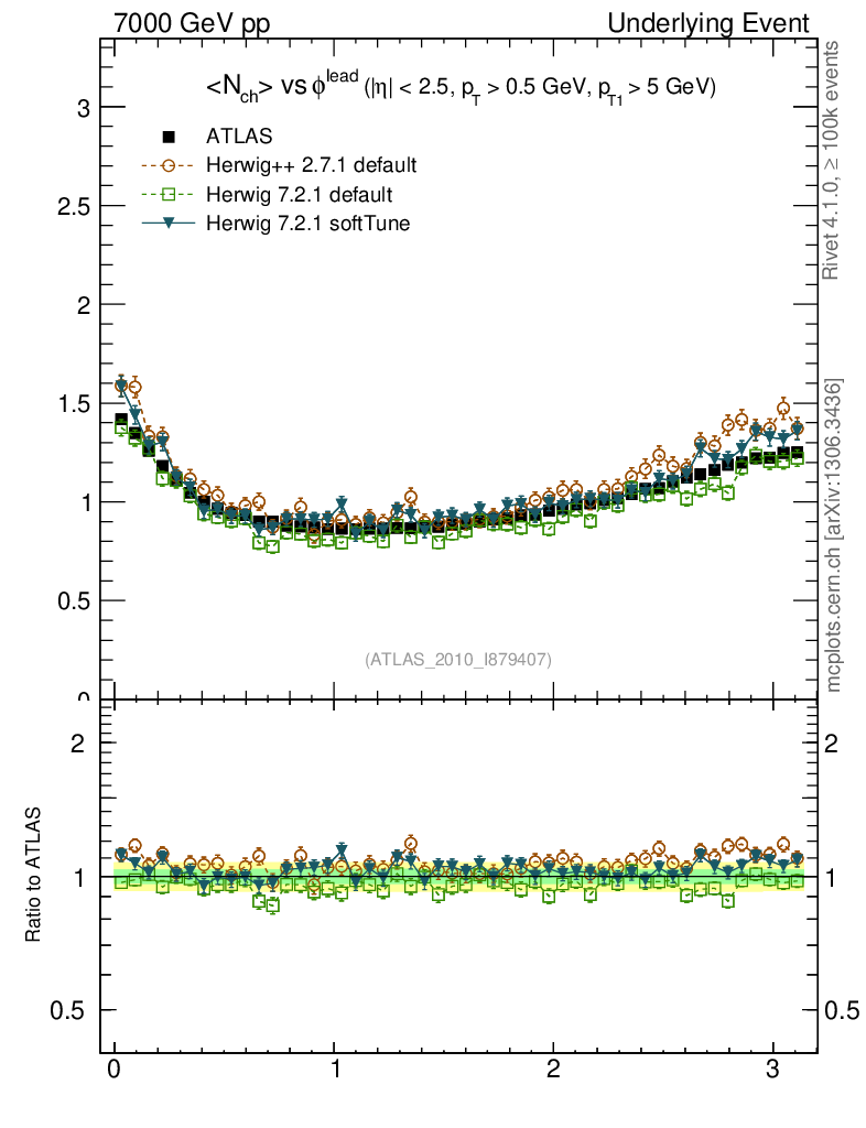 Underlying Event : Δφ distributions : <Nch> vs Δφ