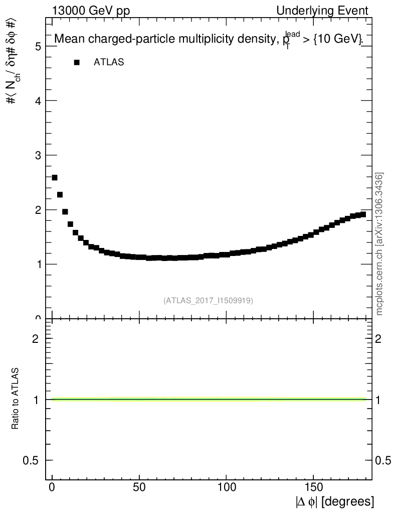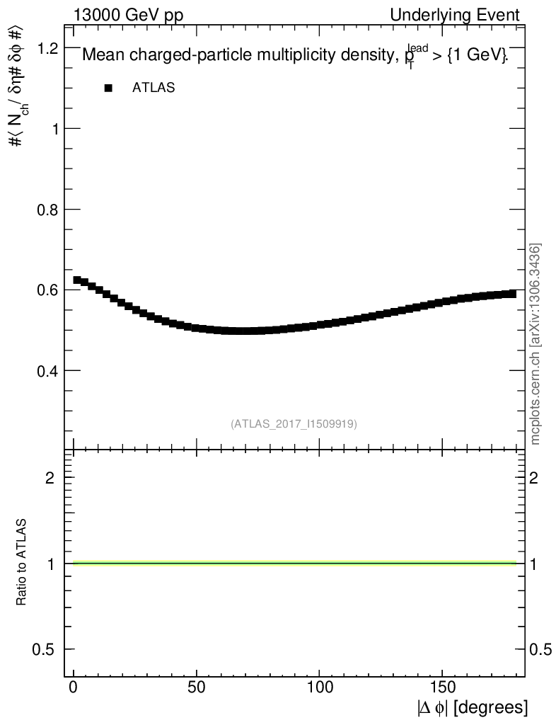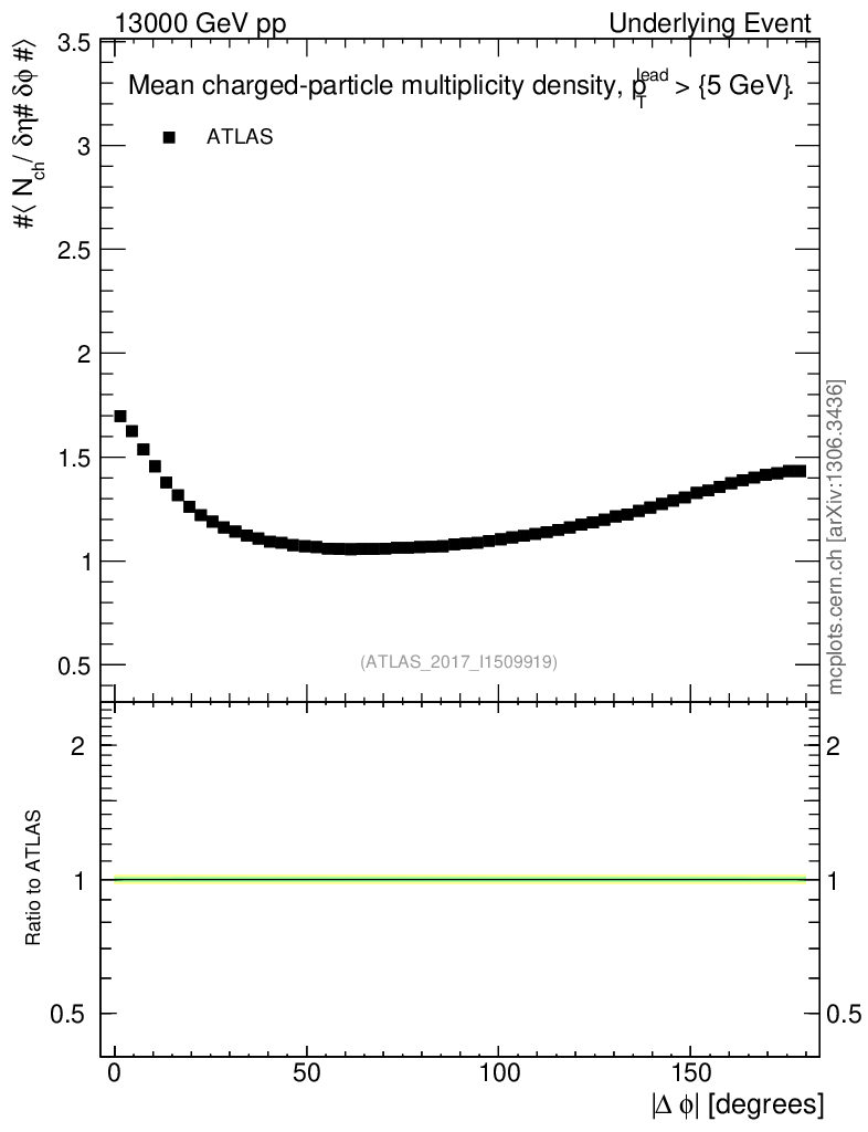 Underlying Event : Δφ distributions : <Nch> vs Δφ
