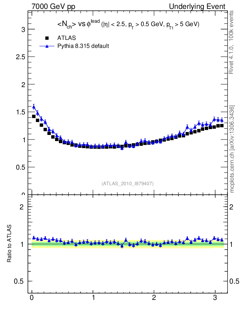Underlying Event : Δφ distributions : <Nch> vs Δφ