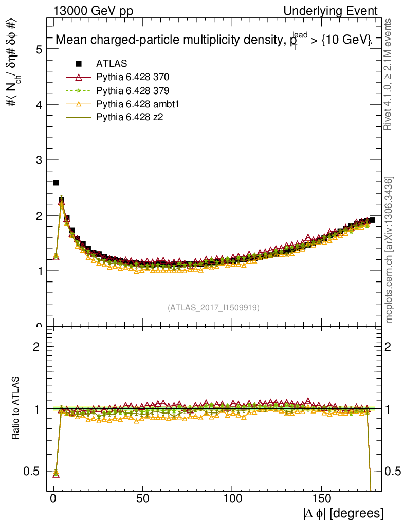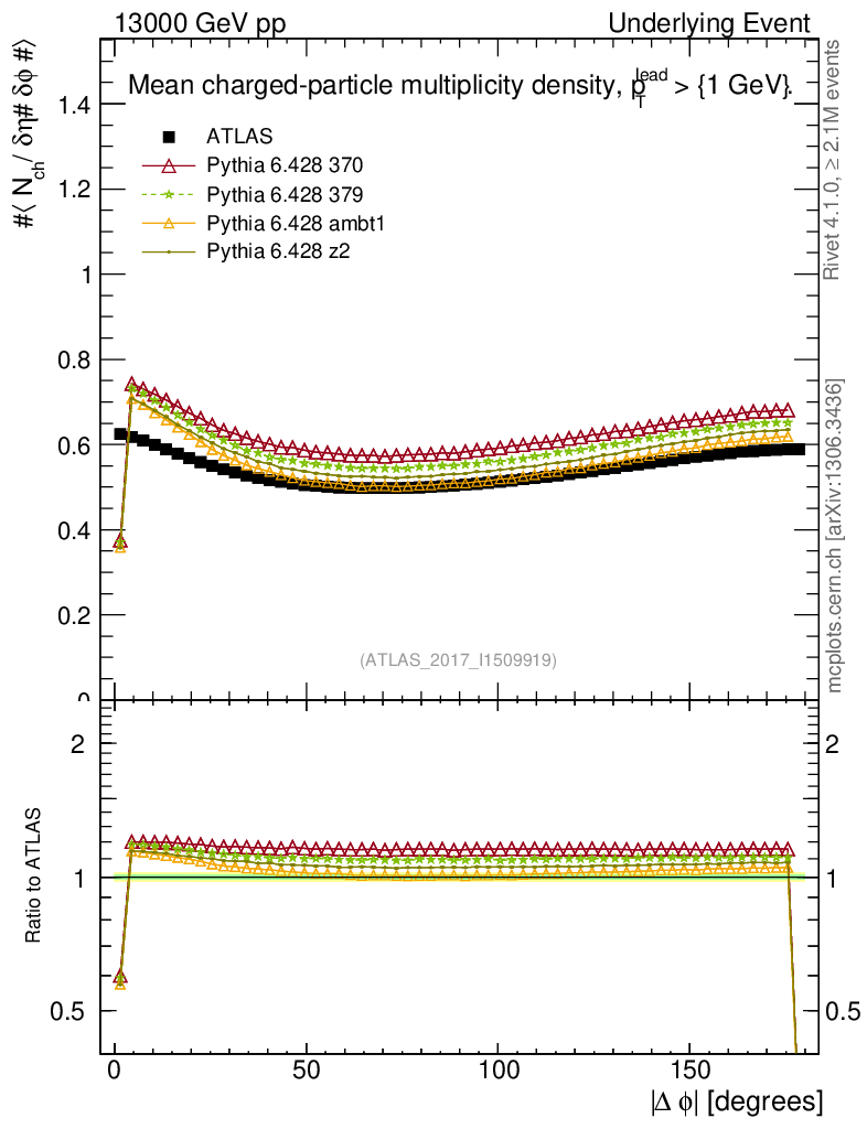 Underlying Event : Δφ distributions : <Nch> vs Δφ