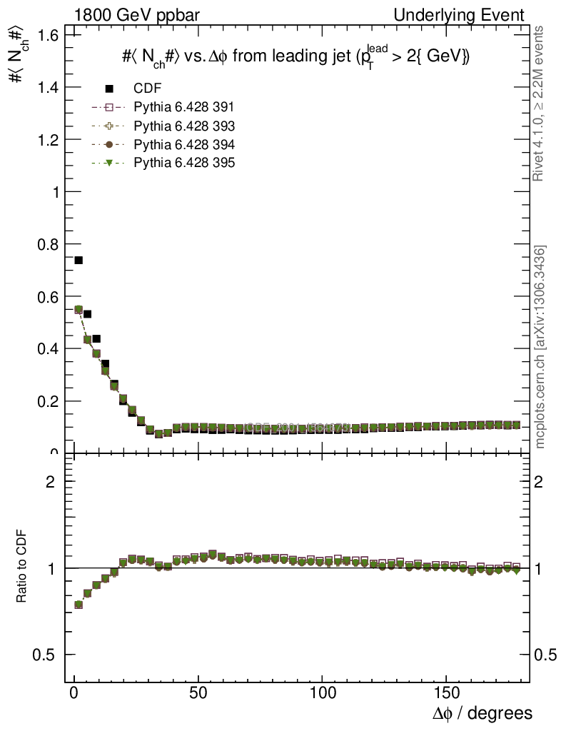 Underlying Event : Δφ distributions : <Nch> vs Δφ