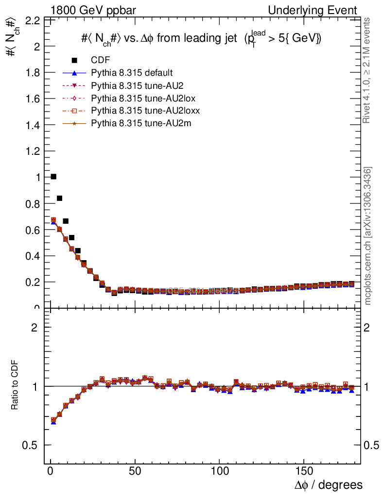 Underlying Event : Δφ distributions : <Nch> vs Δφ