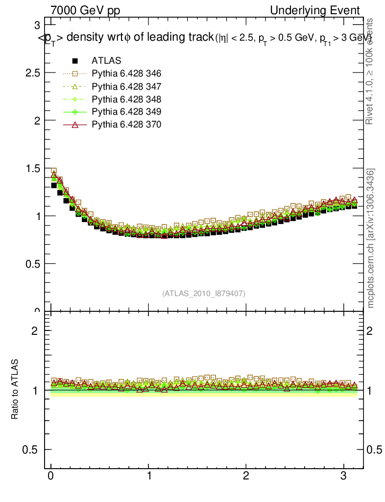 Underlying Event : Δφ distributions : <pT> vs Δφ