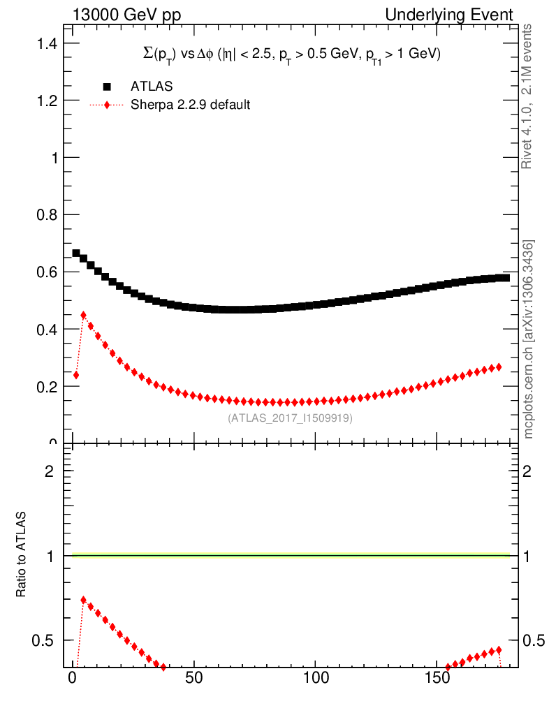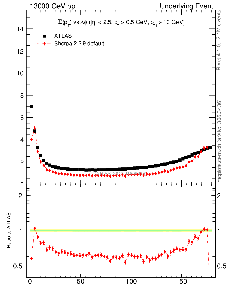 Underlying Event : Δφ distributions : Σ(pT) vs Δφ