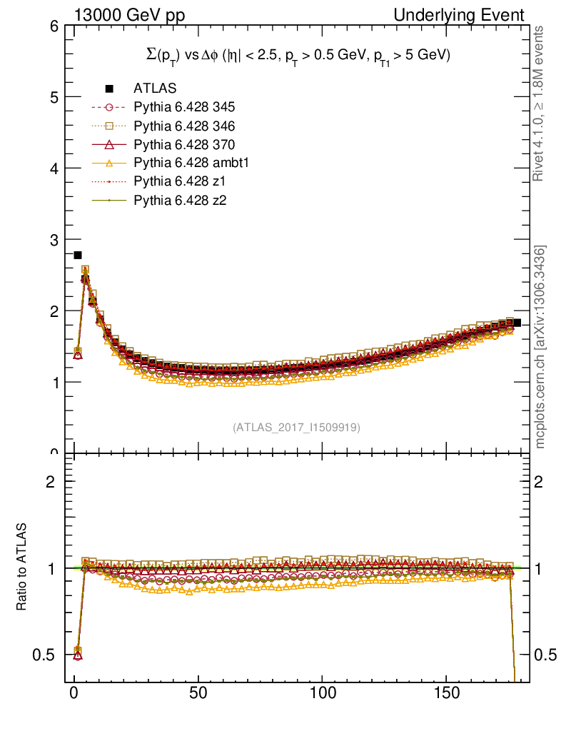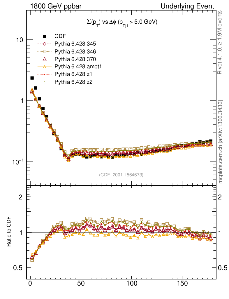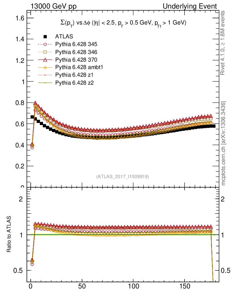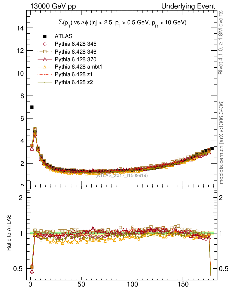 Underlying Event : Δφ distributions : Σ(pT) vs Δφ